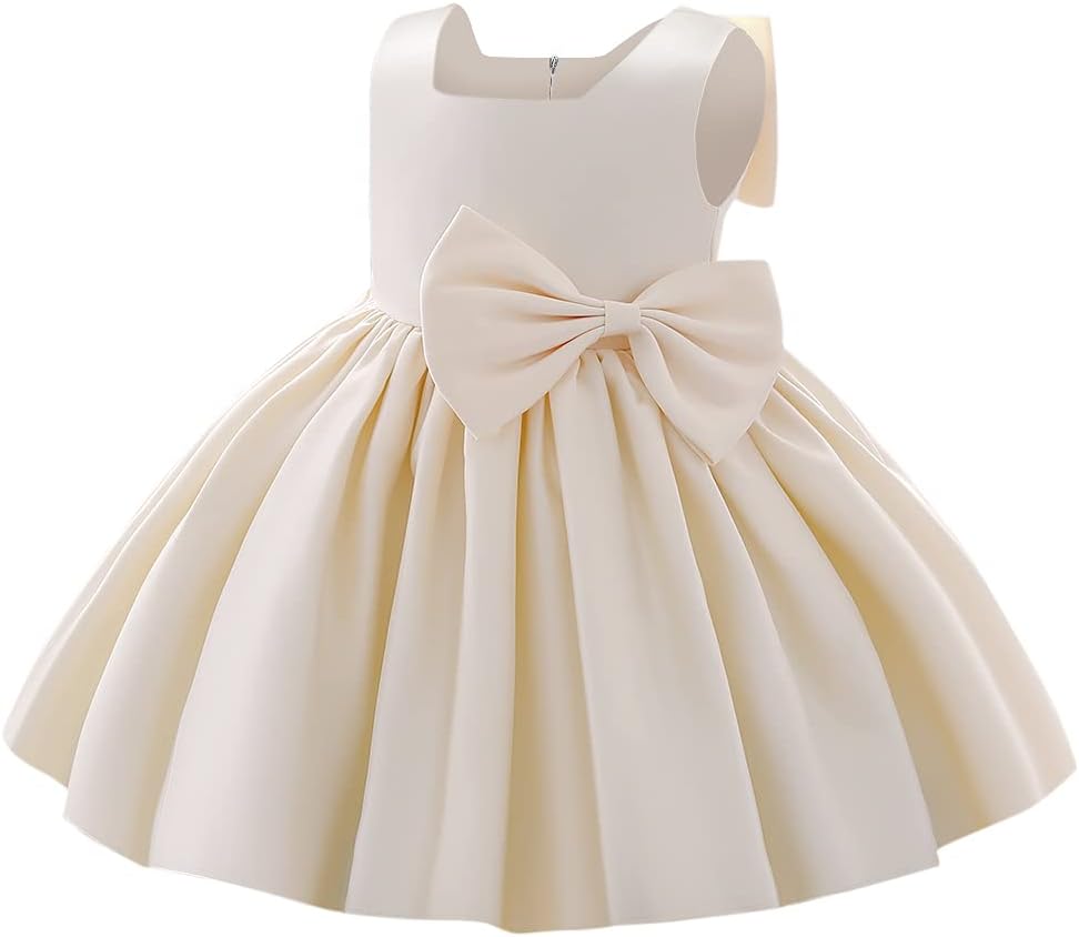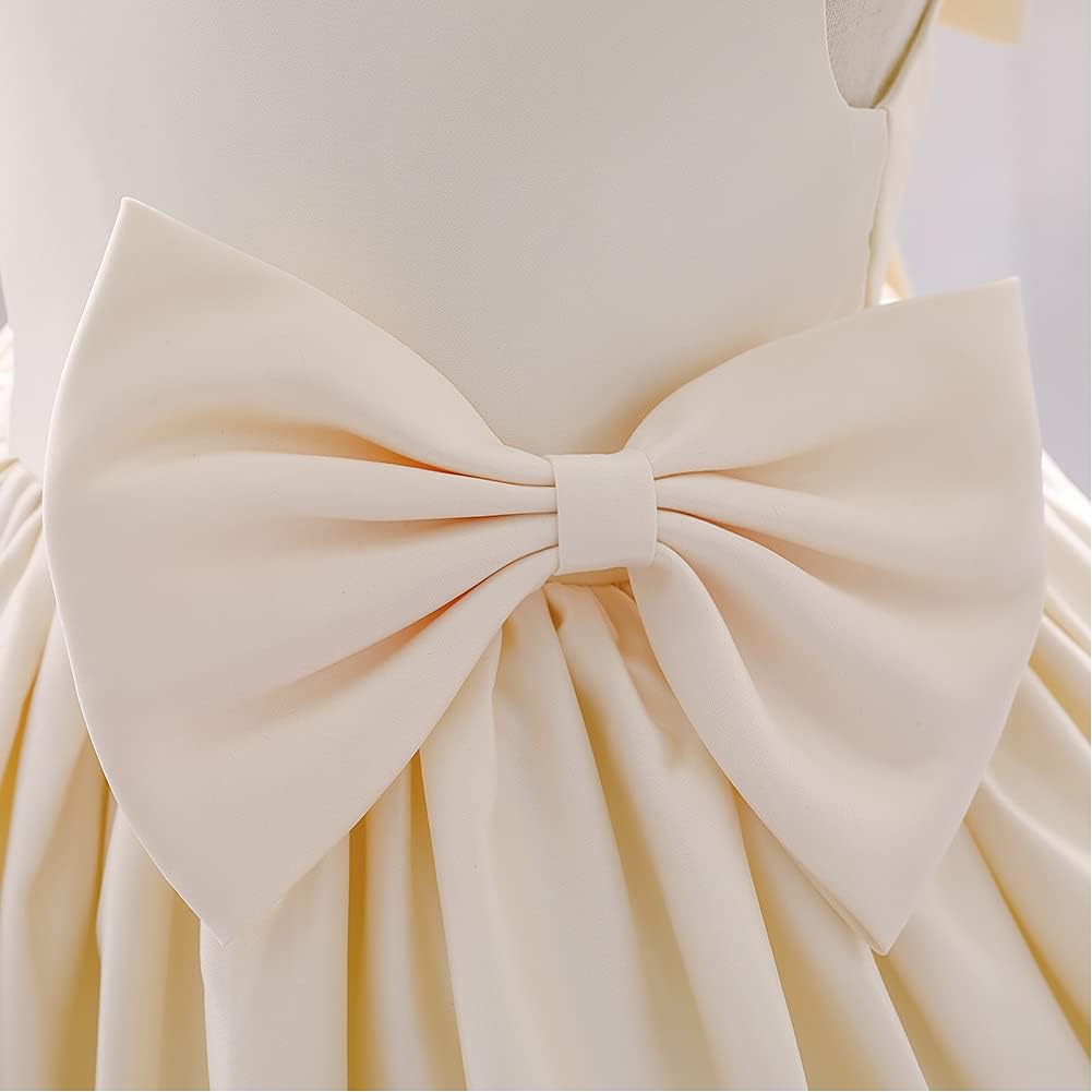IBTOM CASTLE Flower Girls Wedding Dress Kids Pageant Bridesmaid Dress Baby Silky Satin Bowknot Toddler Girl Pirncess Birthday Party Christening Baptism Dress Formal Prom Gown