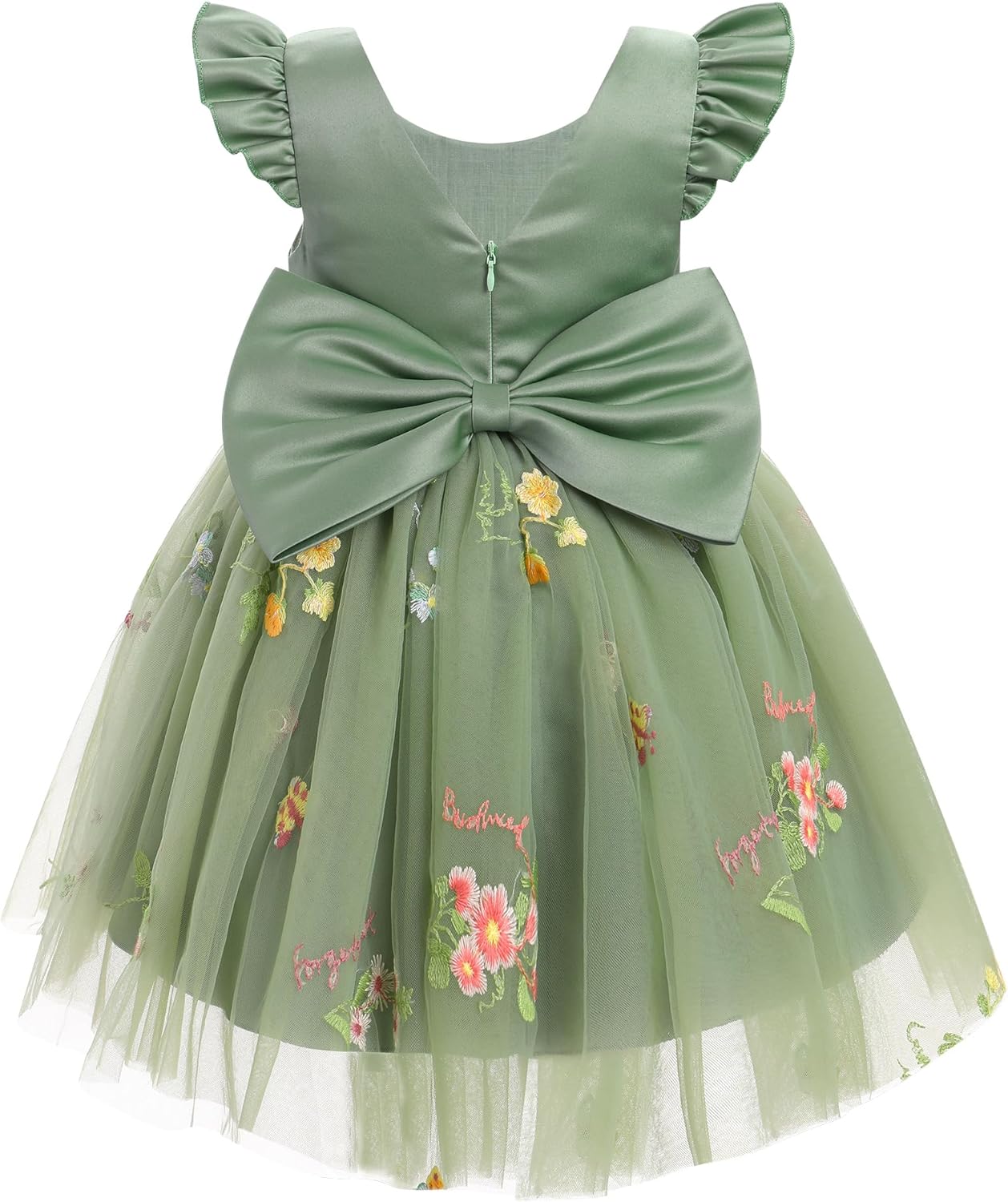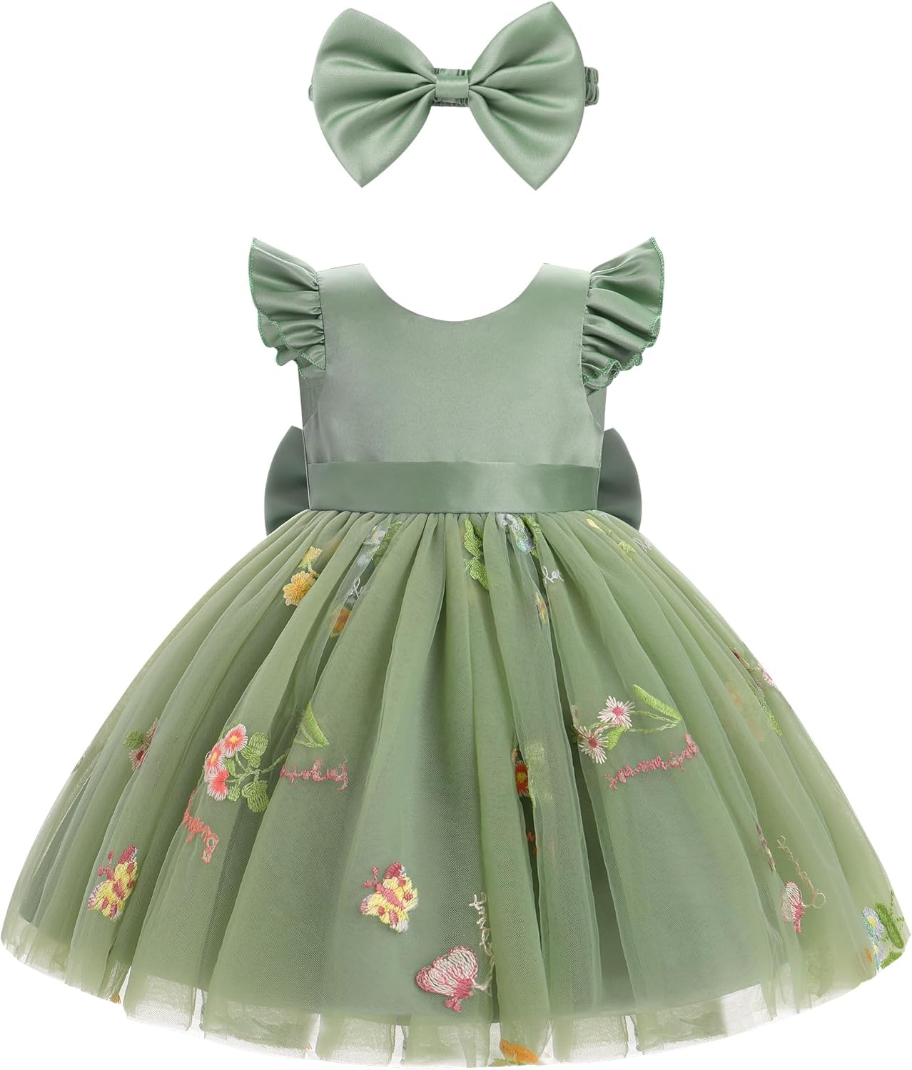 IDOPIP Baby Girls Toldder Girls Flutter Sleeve Sequins Strawberry Floral Embroidered Ruffle Sleeve Tulle Dress with Headband Party Wedding Dress