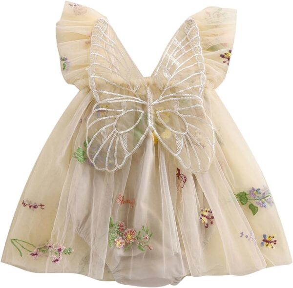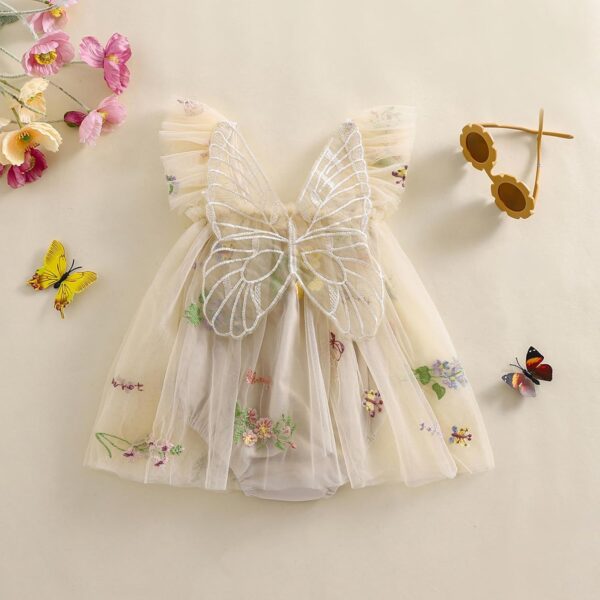 Infant Baby Girl Romper Dress Newborn Baby Girls’ Bodysuits Sleeveless Flower 3D Butterfly Embroidery Jumpsuit Princess Dress A-Line Baptism Wedding Birthday Dress