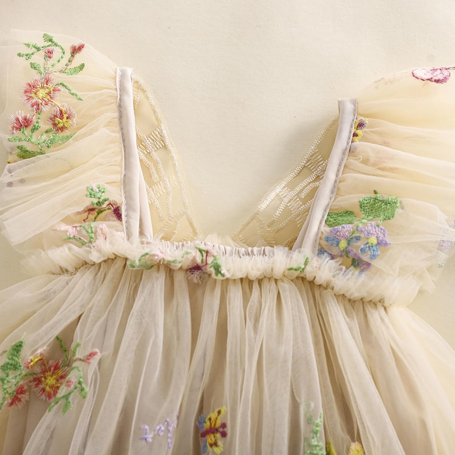 imKutie Baby Girl Romper Dress, Newborn Infant Flower Lace Embroidery Ruffle Boho Princess Dresses Half 1st Birthday Gift Cake Smash Outfits Photoshoot Clothes 0-18 Months