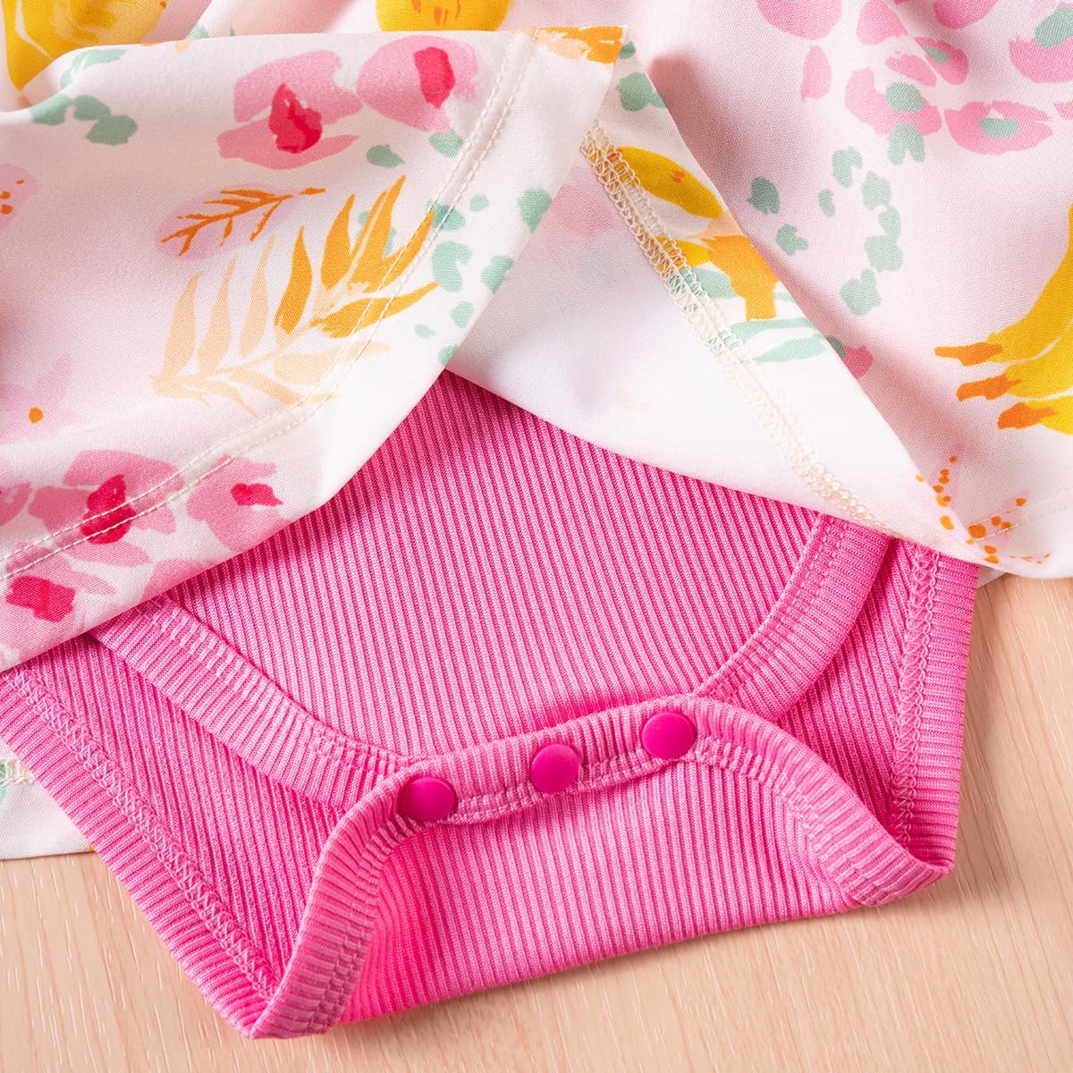 JiAmy Baby Girl Romper Dress Flowers Print Flutter Sleeve A Line Dresses Round Neck Ribbed Bow Clothes for Toddler