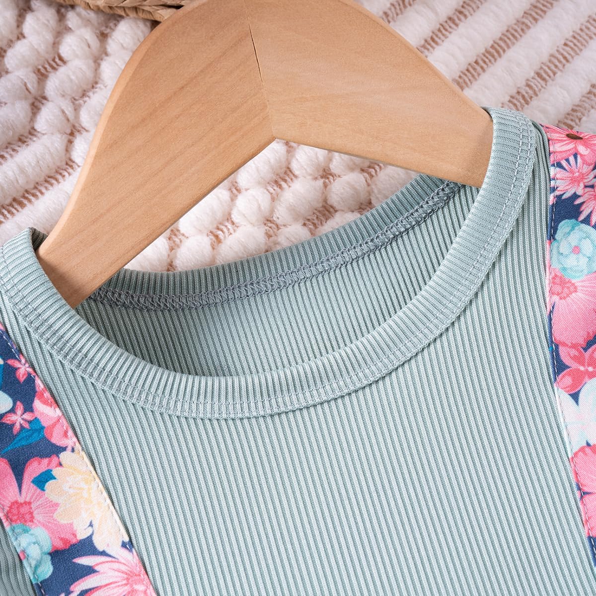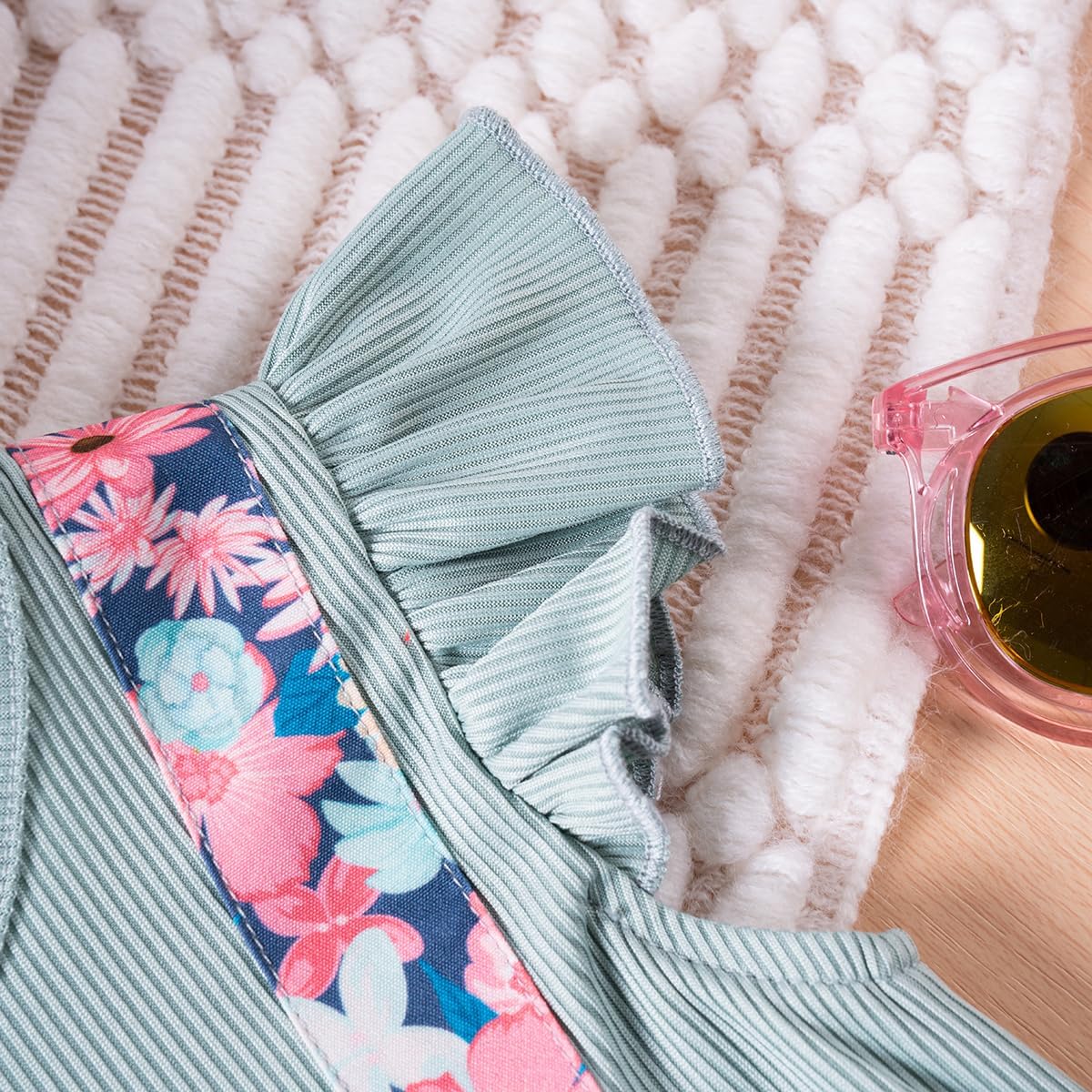 JiAmy Baby Girl Romper Dress Flowers Print Flutter Sleeve A Line Dresses Round Neck Ribbed Bow Clothes for Toddler