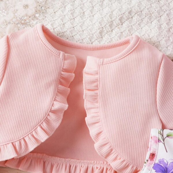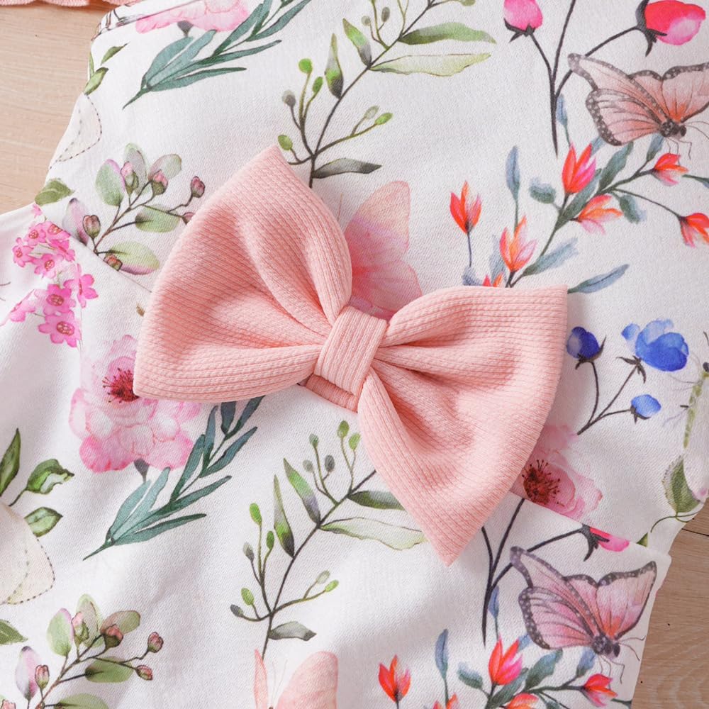 JiAmy Girls Dress and Cardigan Set Toddler Long Sleeve Knitted Coat Sleeveless Floral Print Dresses with Bow 2 Piece Outfits Clothes for Girl 12 Months-7 Years