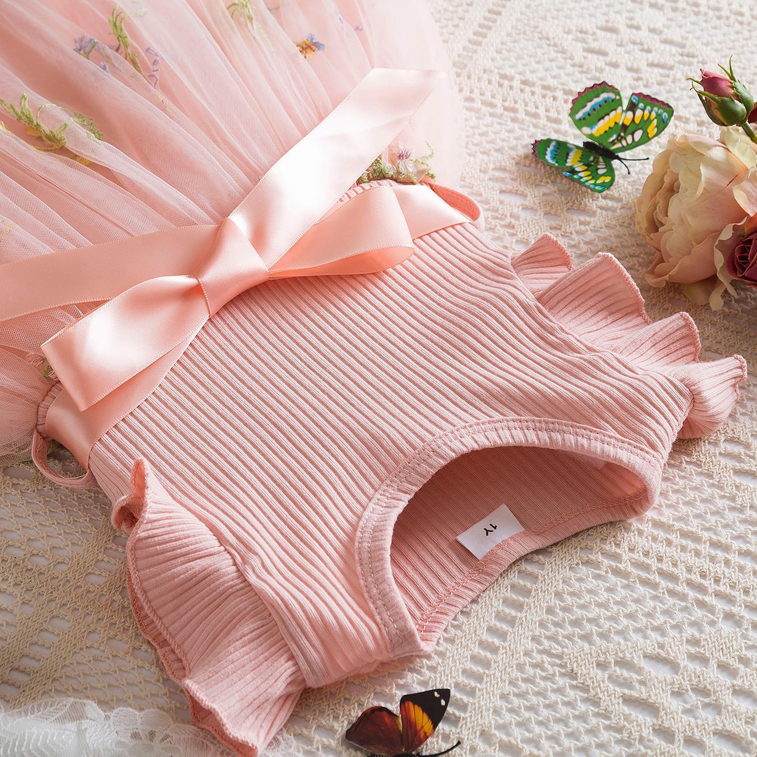 JiAmy Girls’ Dresses Ribbed Knit Tulle Dresses Sequin Spring Flying Sleeves Rainbow Kids Dress for 1-6 Years Old