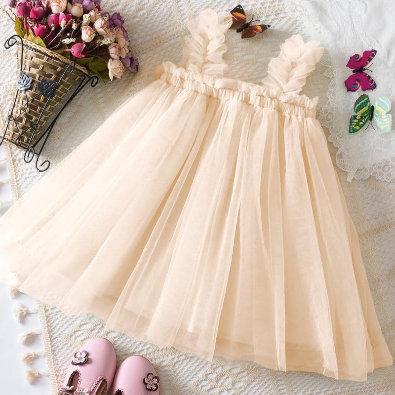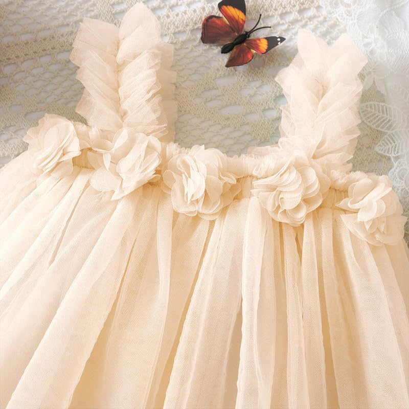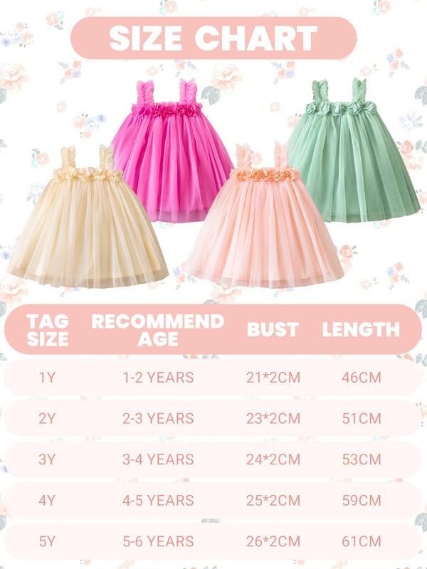 JiAmy Toddler Girl Tulle Dress Princess Casual Summer Strap Flower Sundress Mesh Sleeveless Kids Baby Dresses for Age 2-6