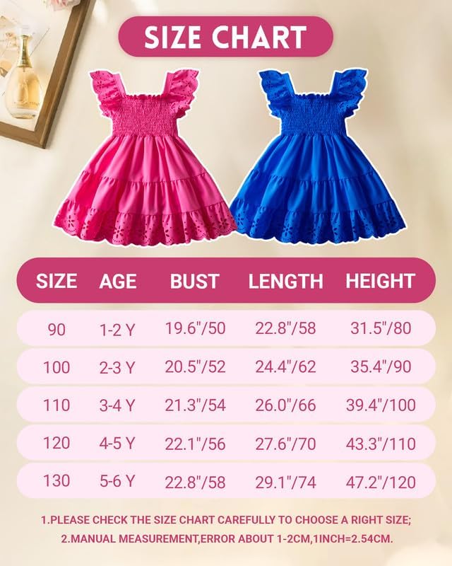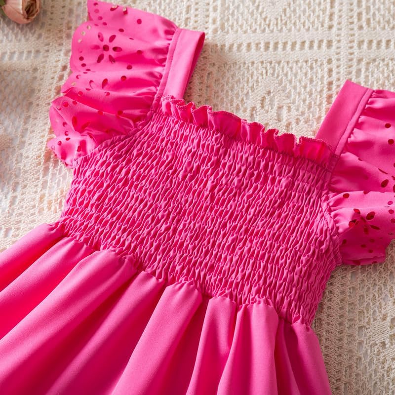 JiAmy Toddler Girls Dresses Ruffle Sleeve Solid Color Hollow Clothes A Line Party Kids Summer Dresses Tiered Splicing Outfit for 1-6 Years