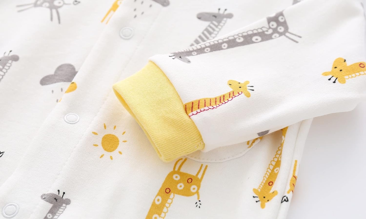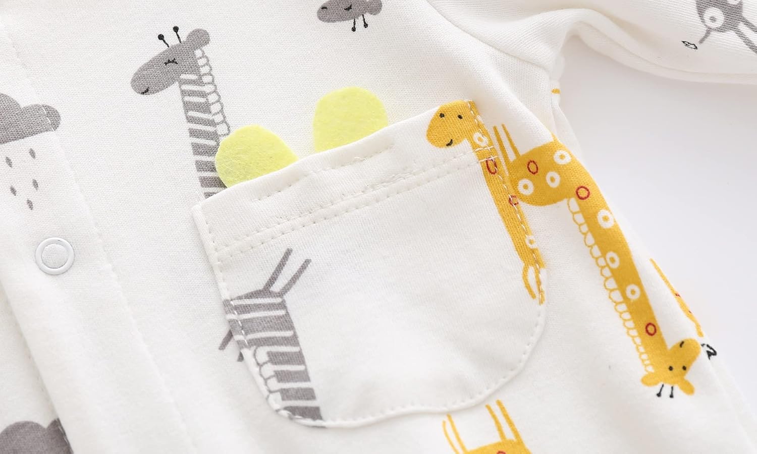 [Cartoon Baby Clothes] Featuring a snug-fit, long sleeve footed romper jumpsuit with convenient snap closures for easy diaper changes. Each piece is adorned with exquisite printing and embroidery, available in a variety of charming colors and patterns.