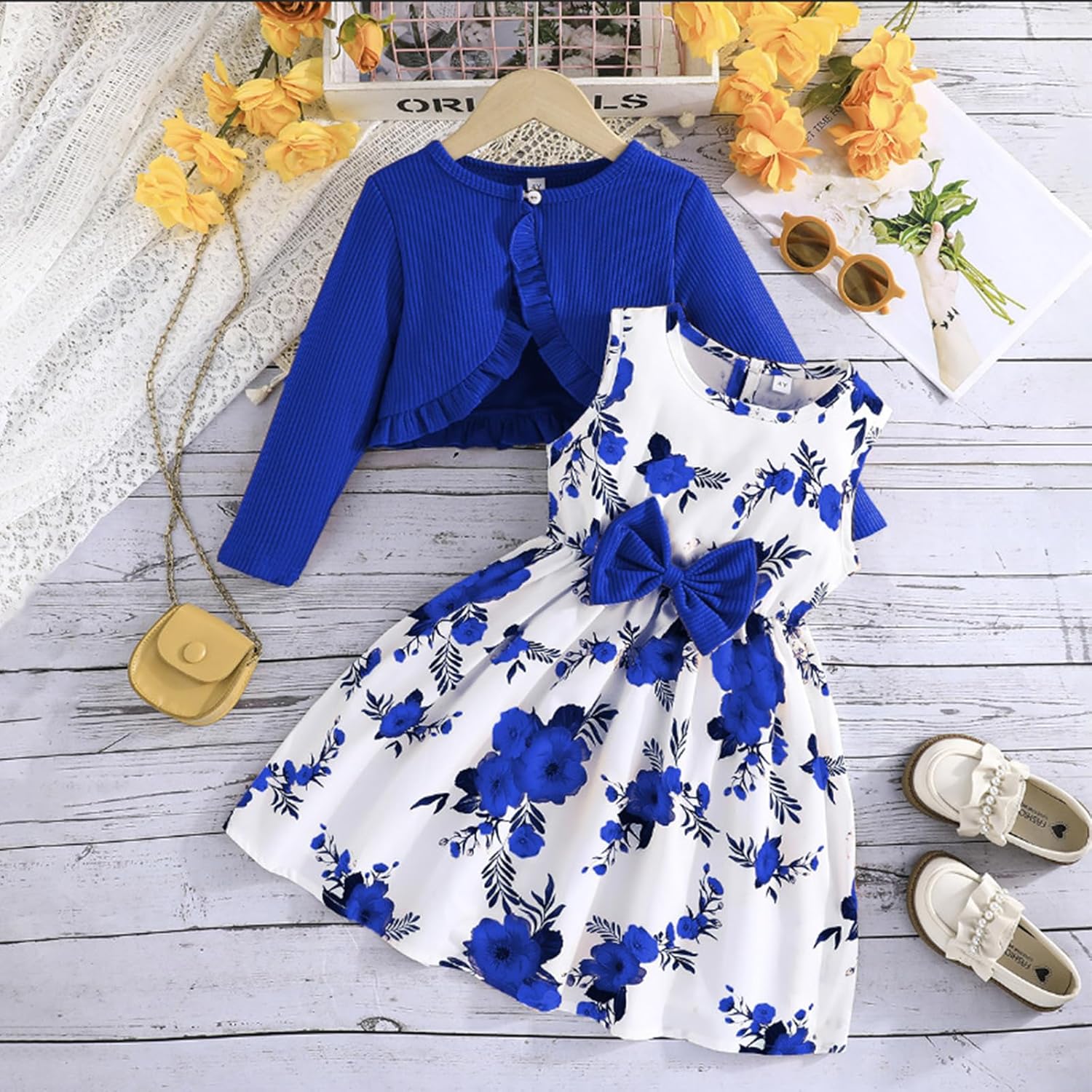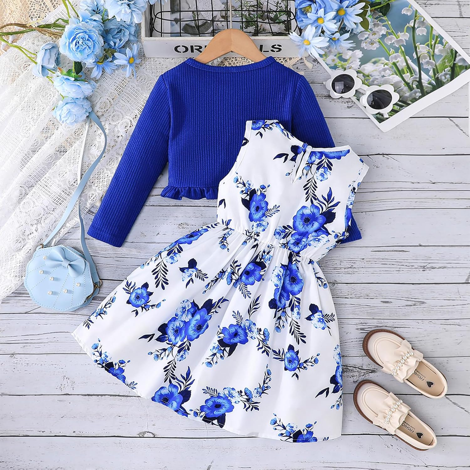 Kunyeah Toddler Girls Dress with Cardigan Set Little Girl Floral Sleeveless Dress Ruffle Coat Baby Long Sleeve Outfit