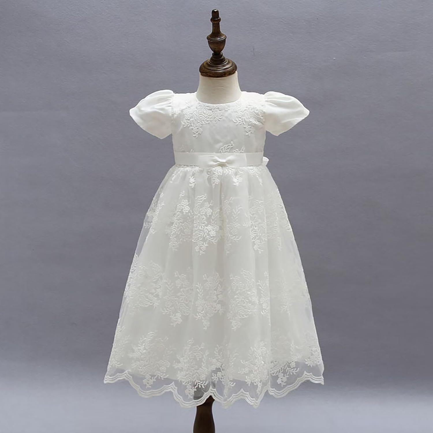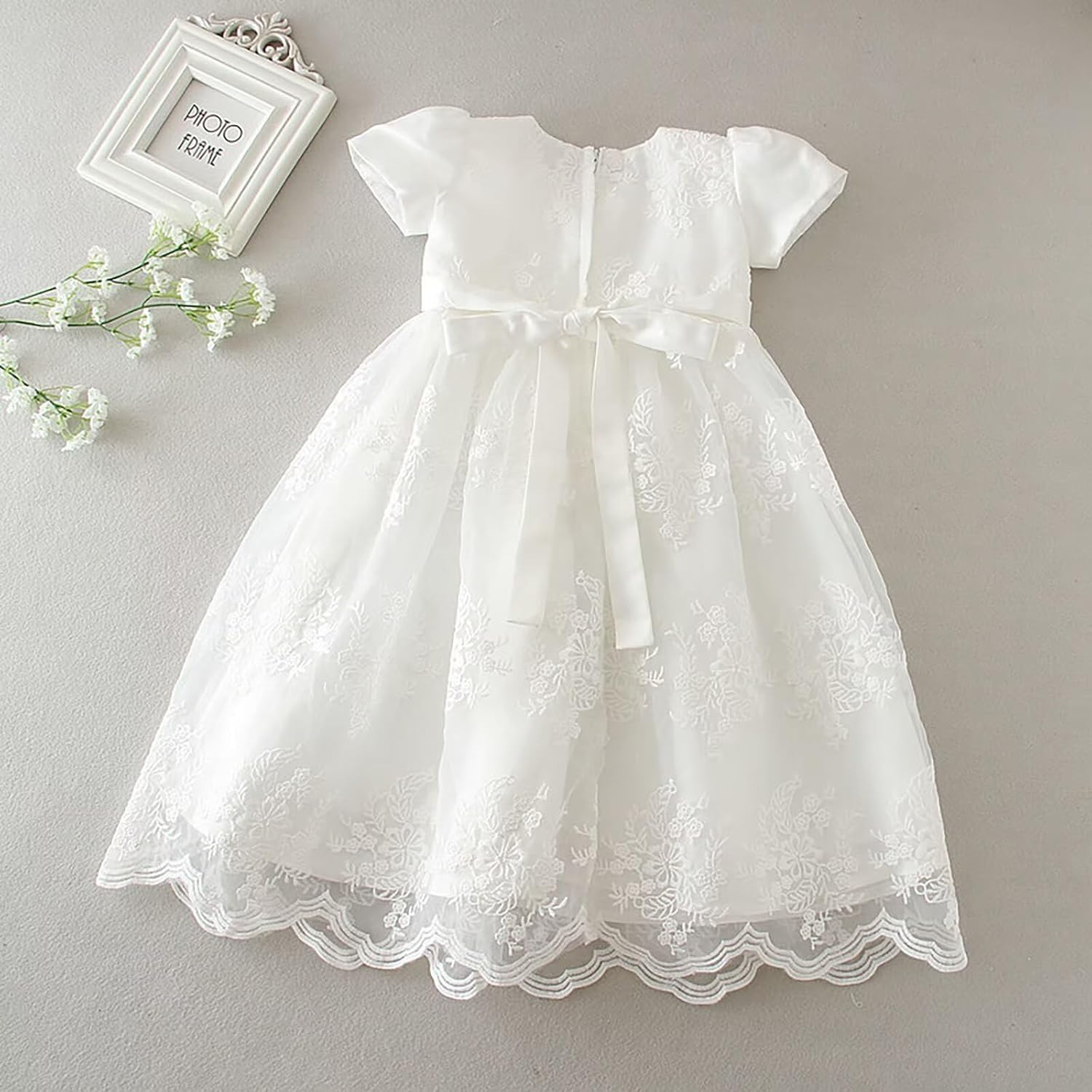 The waistband of this christening dress is adjustable, the little girl’s dad or mum can adjust the waistband by tying a bow at the back according to the little girl’s fit and comfort, which is both beautiful and practical.