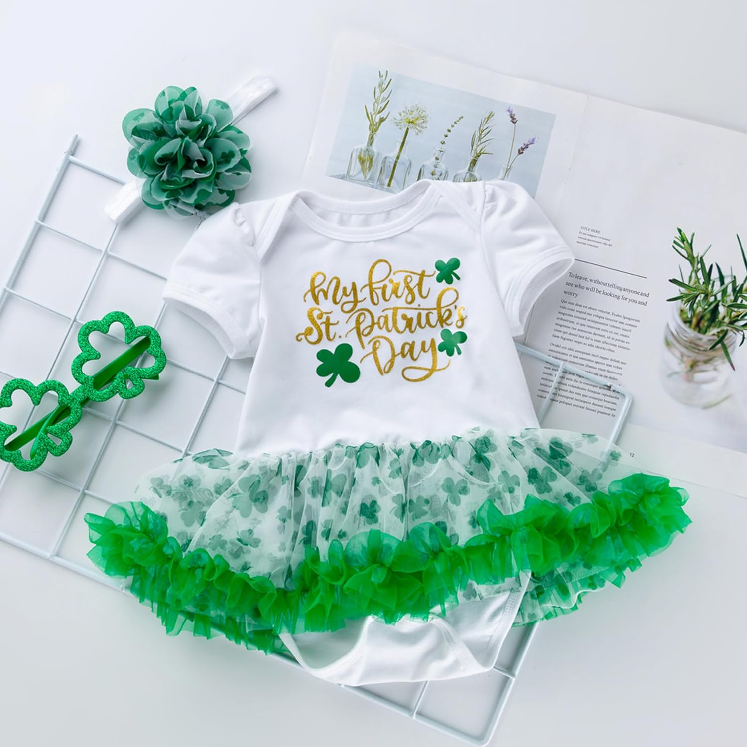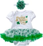 LIKPOJA Newborn Baby Girls My First St. Patrick’s Day Outfits Dress Clothes Set with Baby Headbands Infant Green Tutu Carnival Green Shamrocks Romper