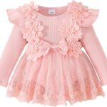 FYMNSI Flower Girl Dress Kids Baby Lace Floral Embroidery Sleeveless A-line Knee Length Princess Tutu Dress for Wedding Bridesmaid Birthday Party Christening Pageant Cocktail Evening 18M-10Y