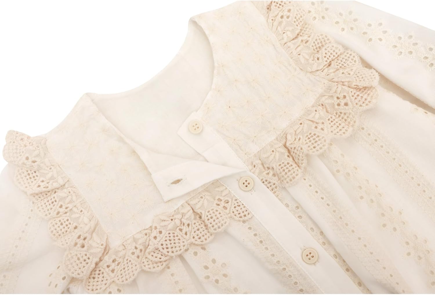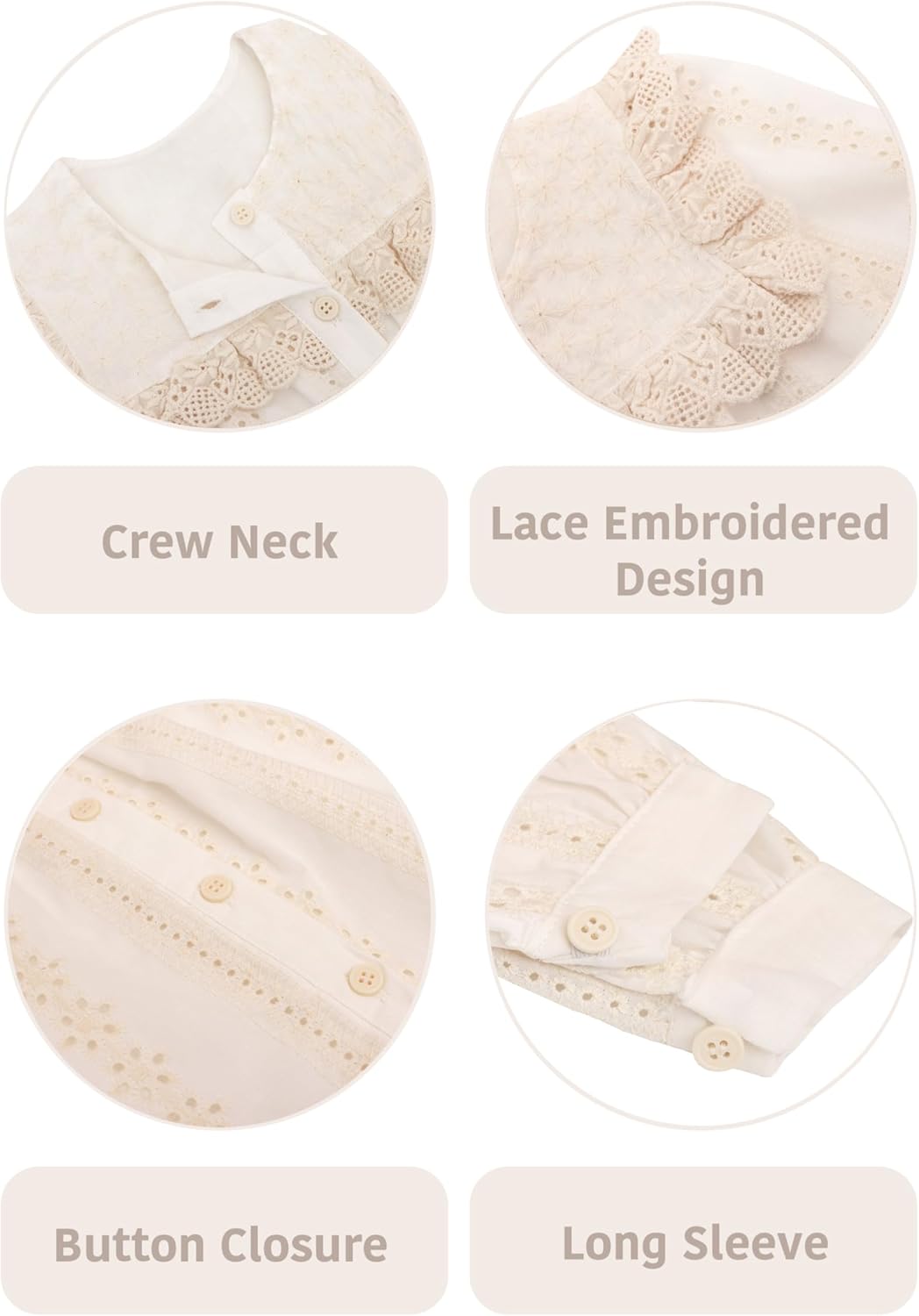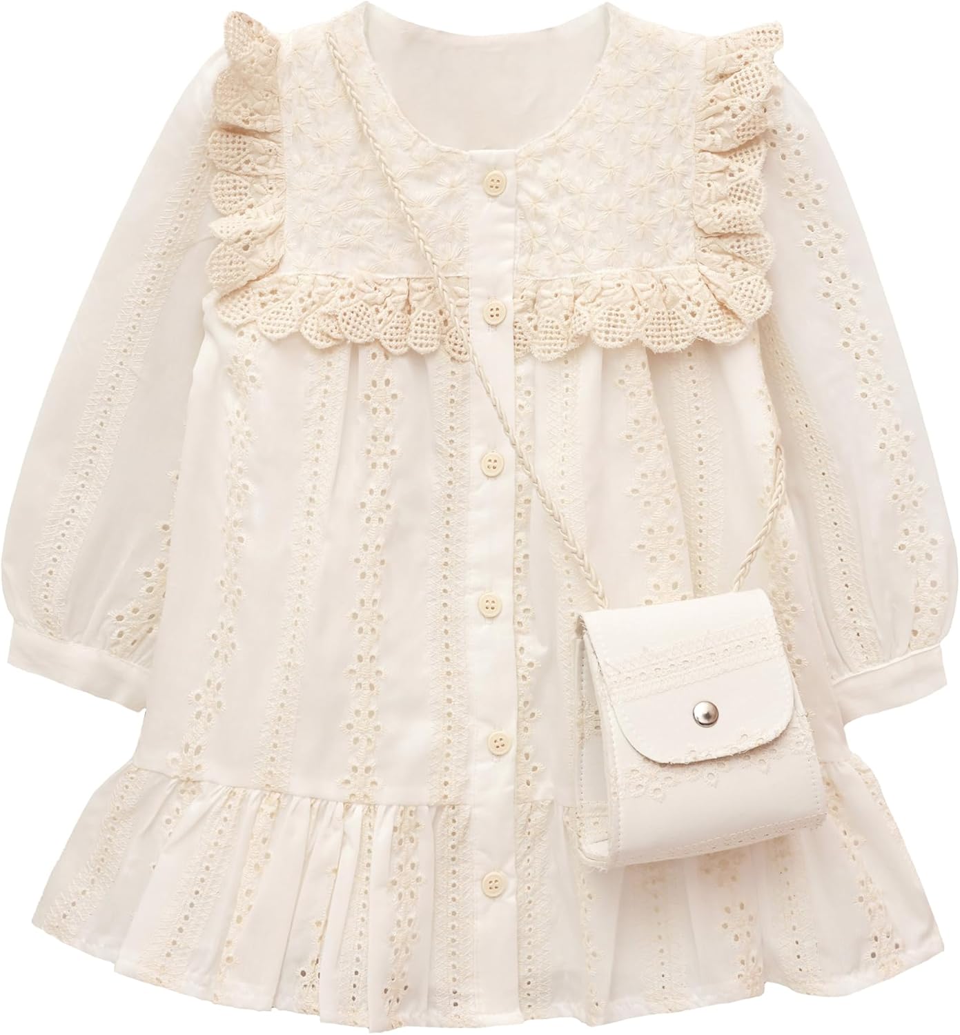 Lilax Toddler Girls’ Long Sleeve Lace Embroidered Button Down Dress with Matching Bag