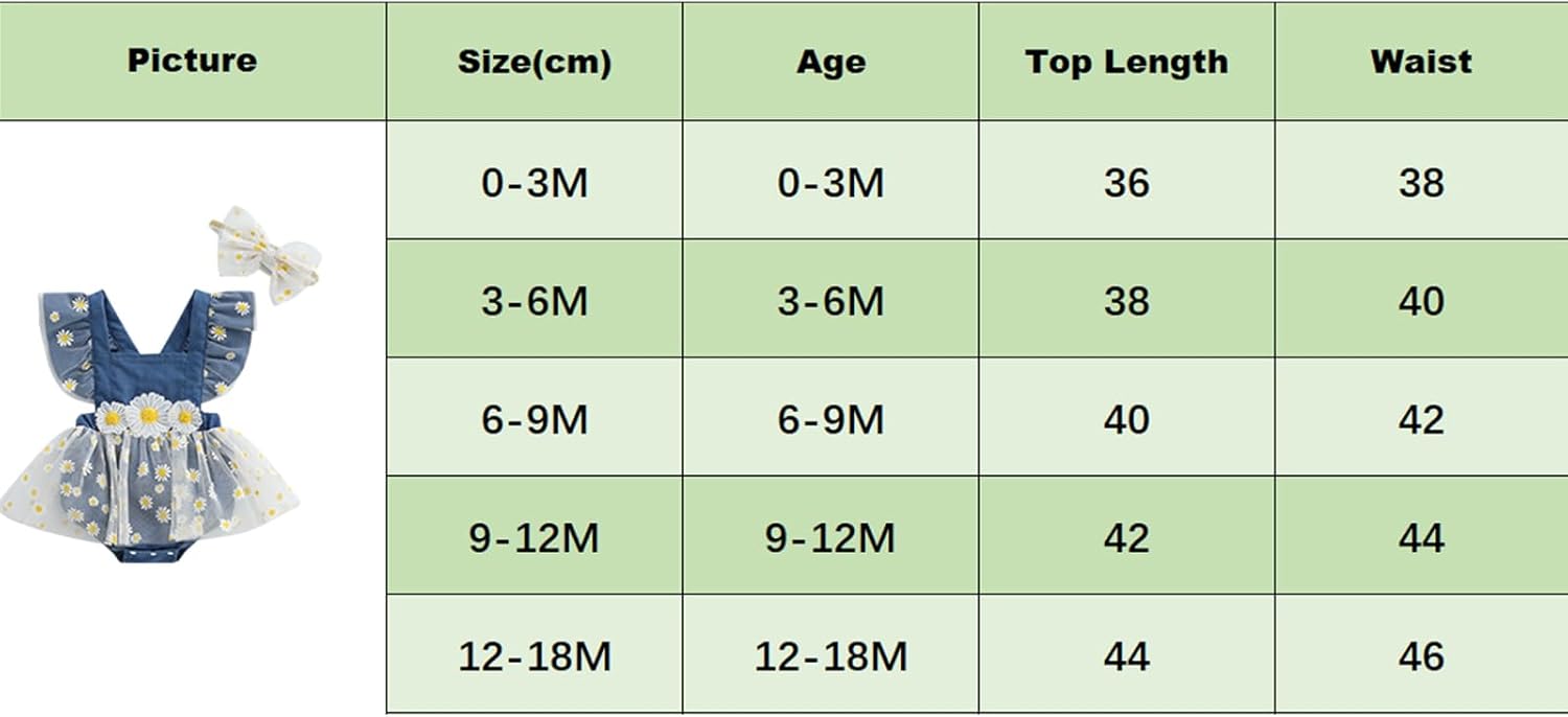 3-6M Romper Length: 14.96 Waist: 15.75 Advised Age: 3-6 Months