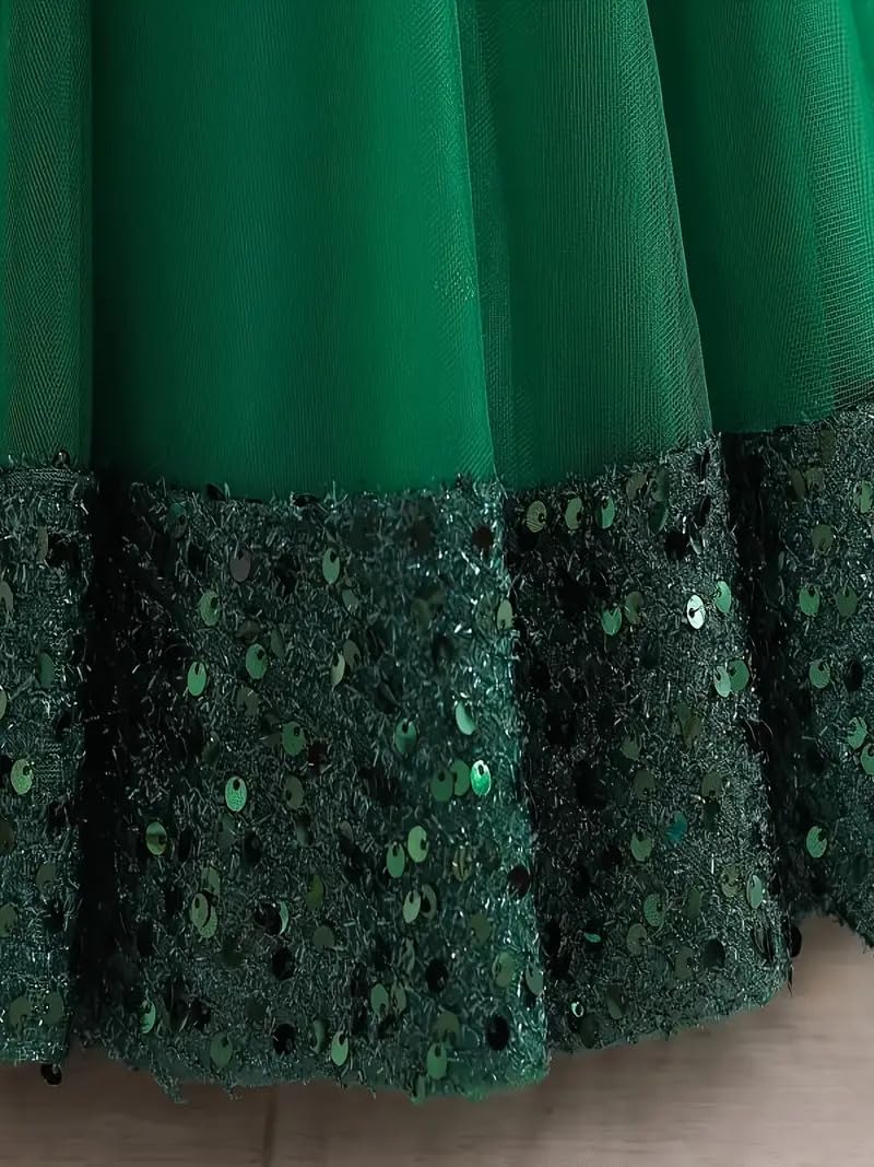 miço kids Girls Sequin Tulle Dress, Girl Ball Gown Birthday Party Outfit, Satin Princess Dress, Flower Girl Wedding Outfit