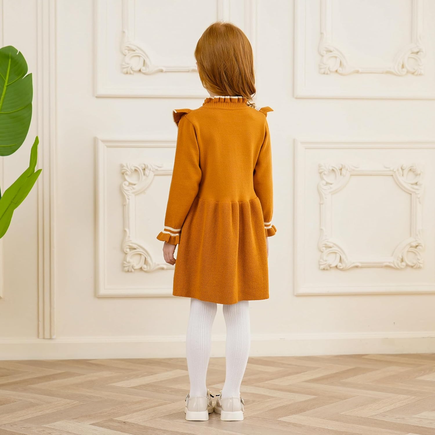 Miipat Baby Girl Dress Long Sleeve Toddler Girls Sweater Dresses Fall Winter Ruffle Pullover Knit Outfits for Girl