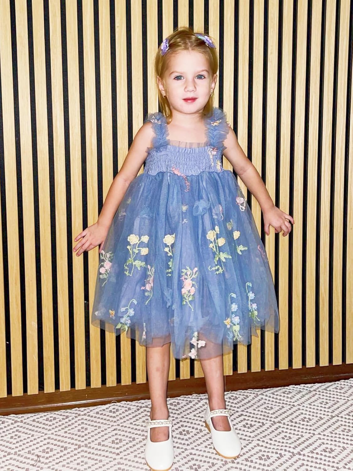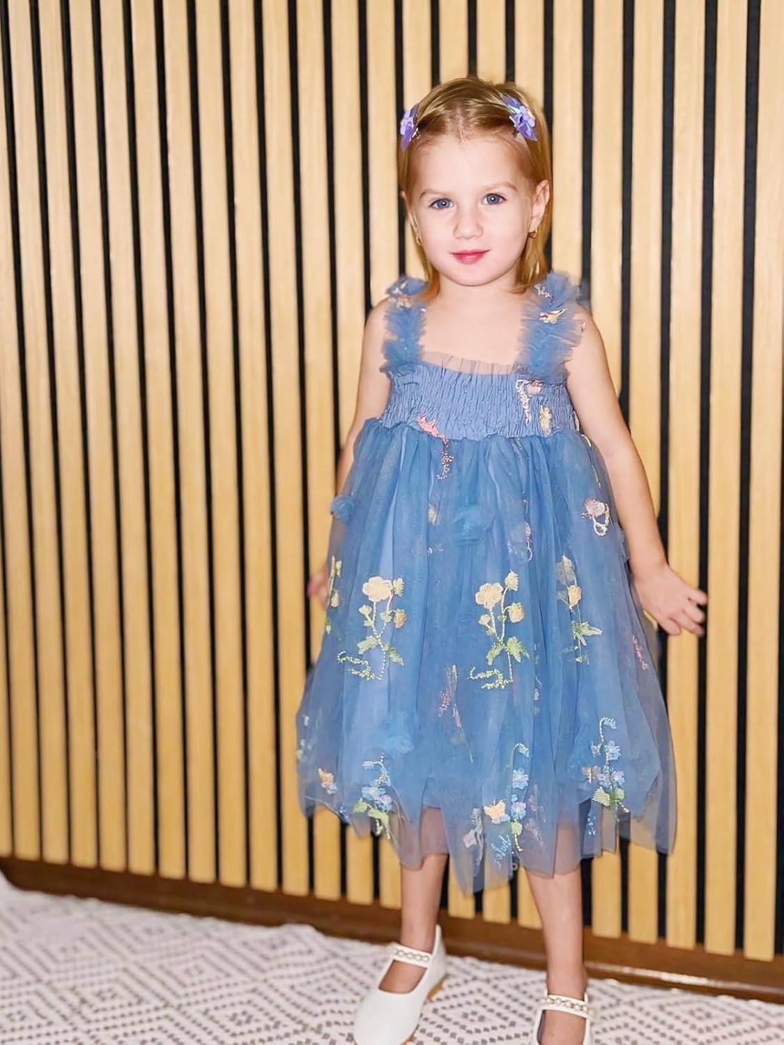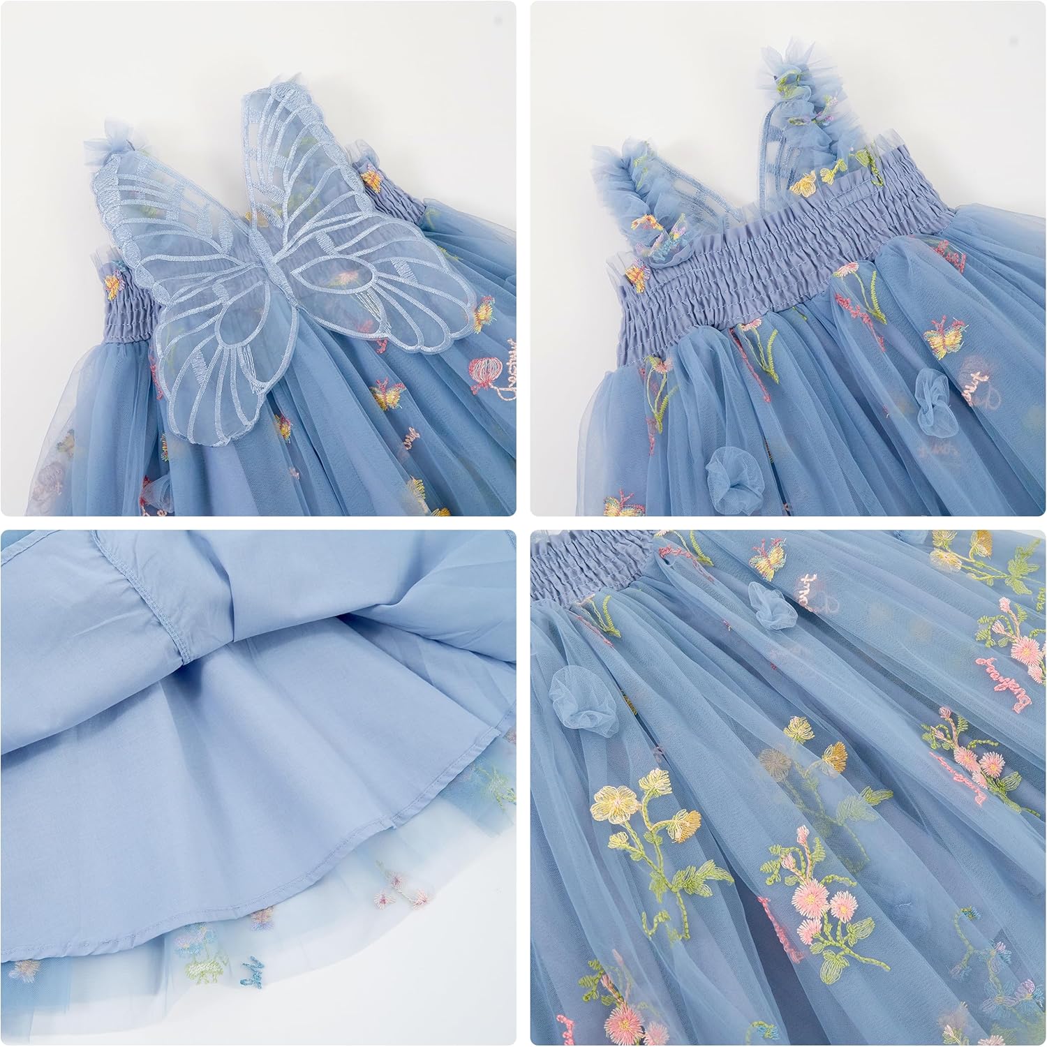 Miipat Baby Girl Dress Tulle Butterfly Toddler Girls Sleeveless Embroidery Floral Princess Dresses Wedding Party Birthday Dress for Girl