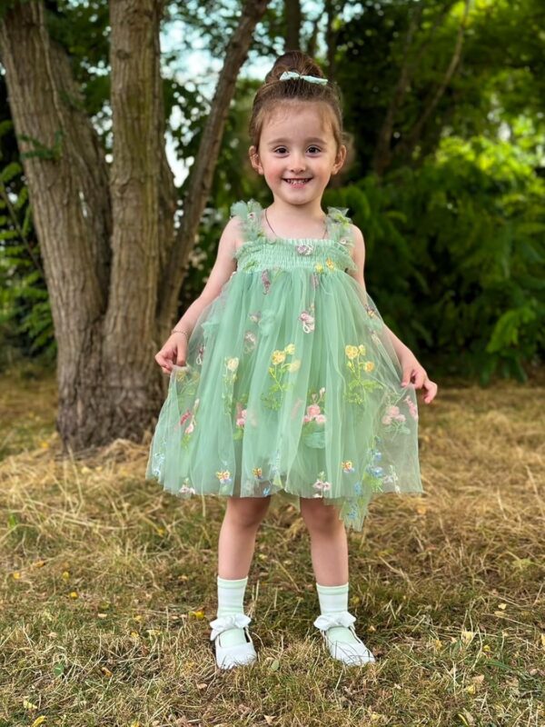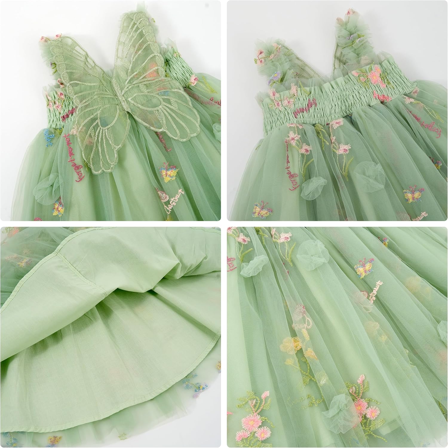 Miipat Baby Girl Dress Tulle Butterfly Toddler Girls Sleeveless Embroidery Floral Princess Dresses Wedding Party Birthday Dress for Girl