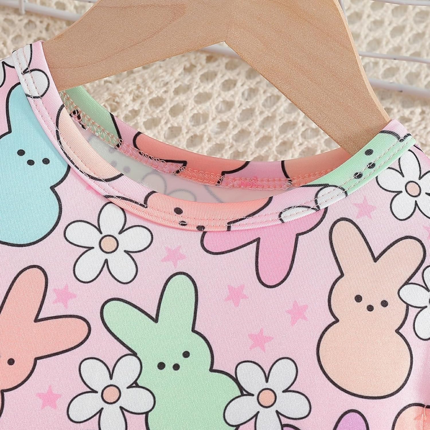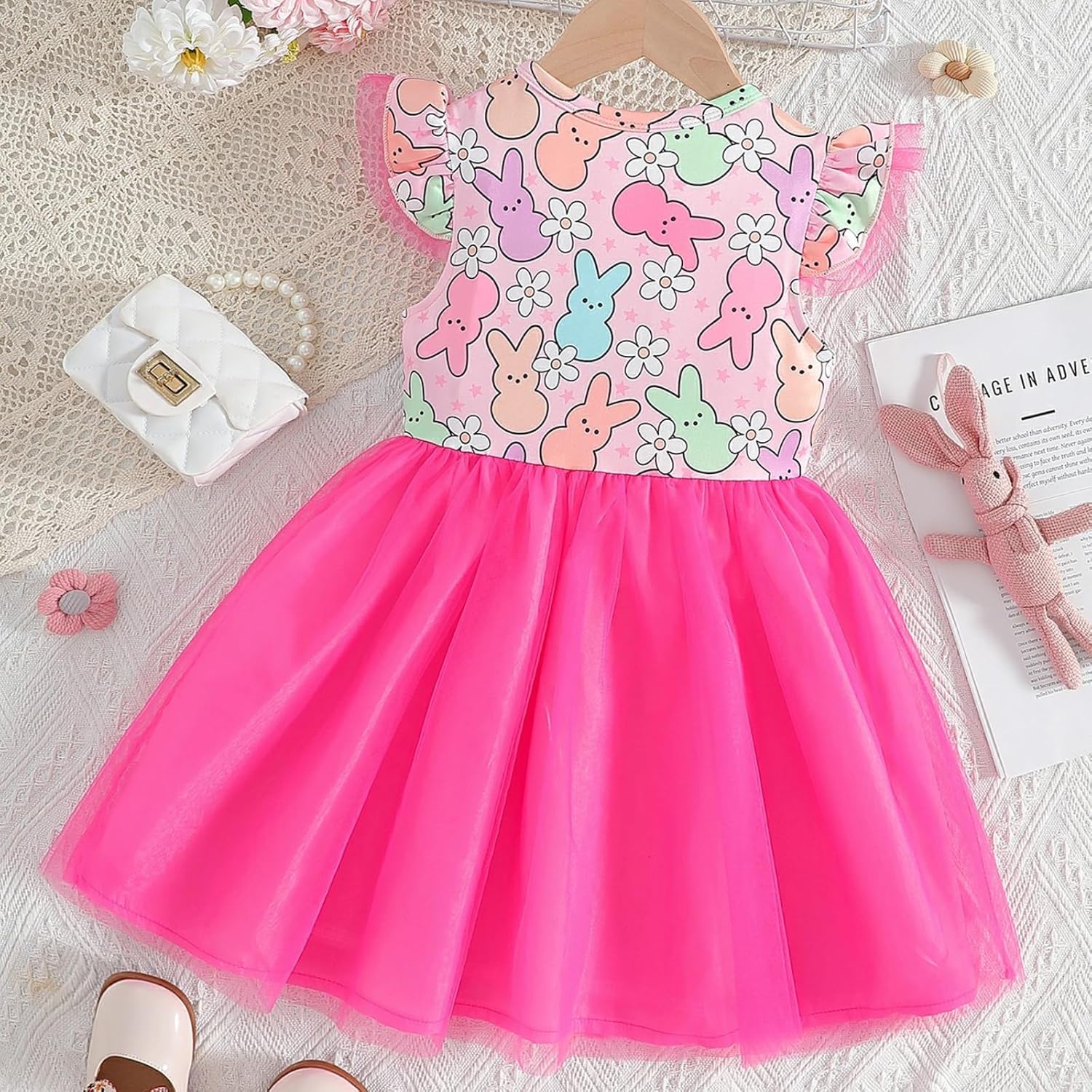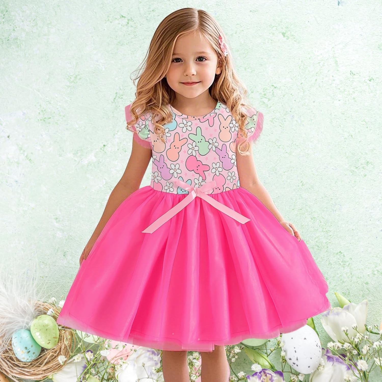 Momkonzz Girls Easter Dress Toddler Girl Bunny Floral Tulle Tutu Dresses Little Girl Short Sleeve Summer Sundress