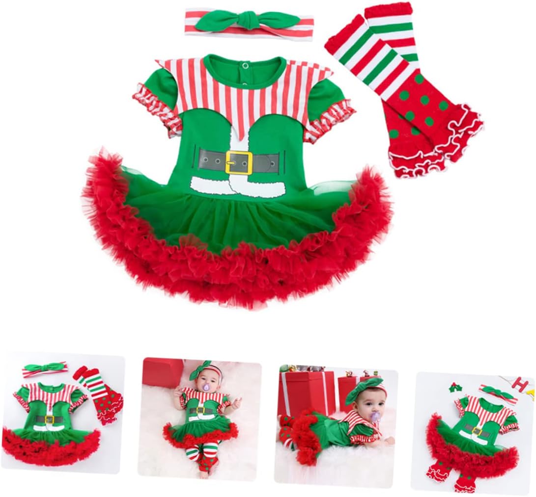 OATIPHO Baby Toddler Costumes Dress Set 3-6 Months Christmas Clothes Baby Dress Set Breathable Gauze Collar Christmas Atmosphere Green