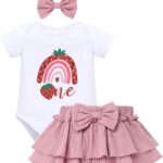 Baby Girls 1st Birthday Cake Smash Outfit Toddlers Infant Adorable Sweet Short Puff Sleeve Ruffle Tulle Romper Dress and Headband 2 Pcs Outfits Bodysuit Photo Shooting Props