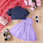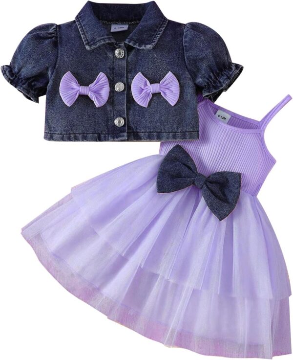 OMEWEE Baby Girl Denim Jacket and Tulle Dress 2PCS Outfits for Birthday
