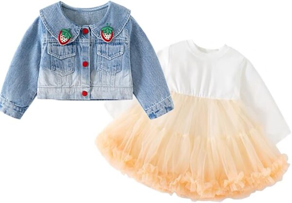 Peacolate 2-7Years Spring Autumn Little Big Girl 2pcs Dresses Clothing Sets Denim Jacket and Dress
