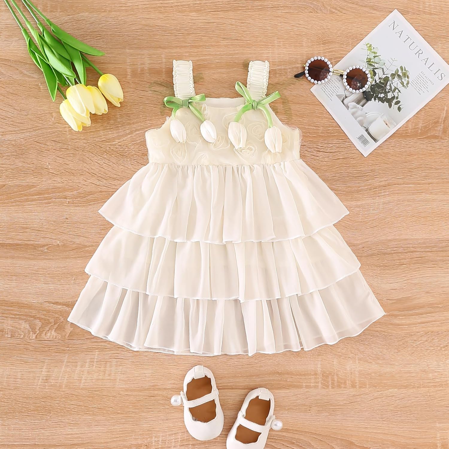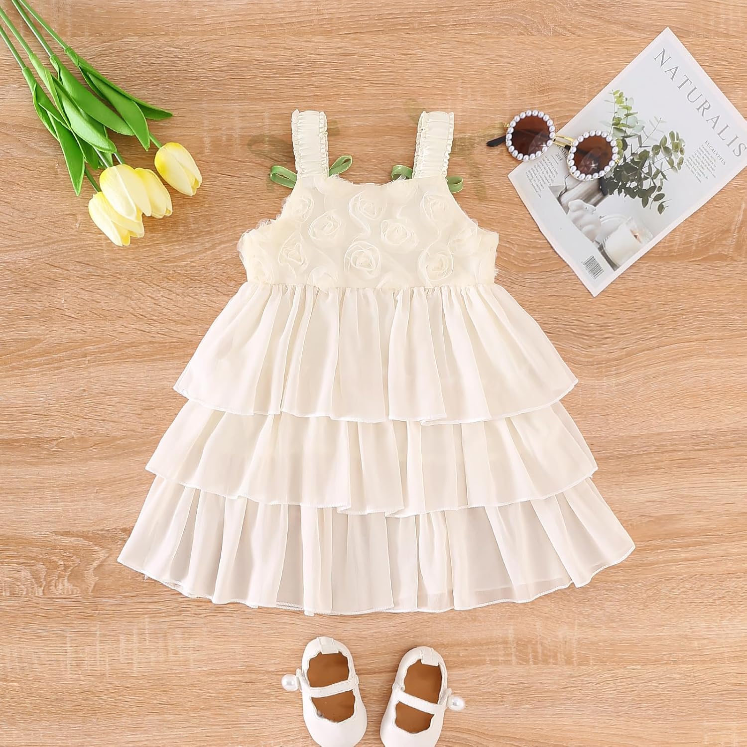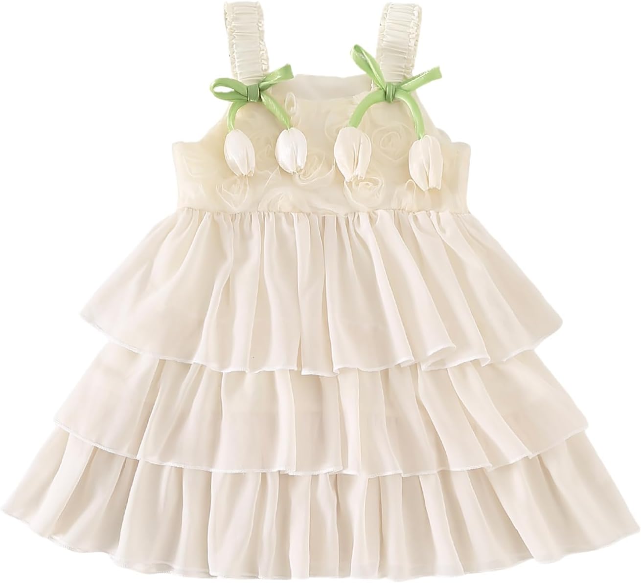 RWYBEYW Toddler Baby Girl Sleeveless Princess Dress Floral Bows Layered A-Line Dress Summer Beach Sundress Birthday Party Dresses