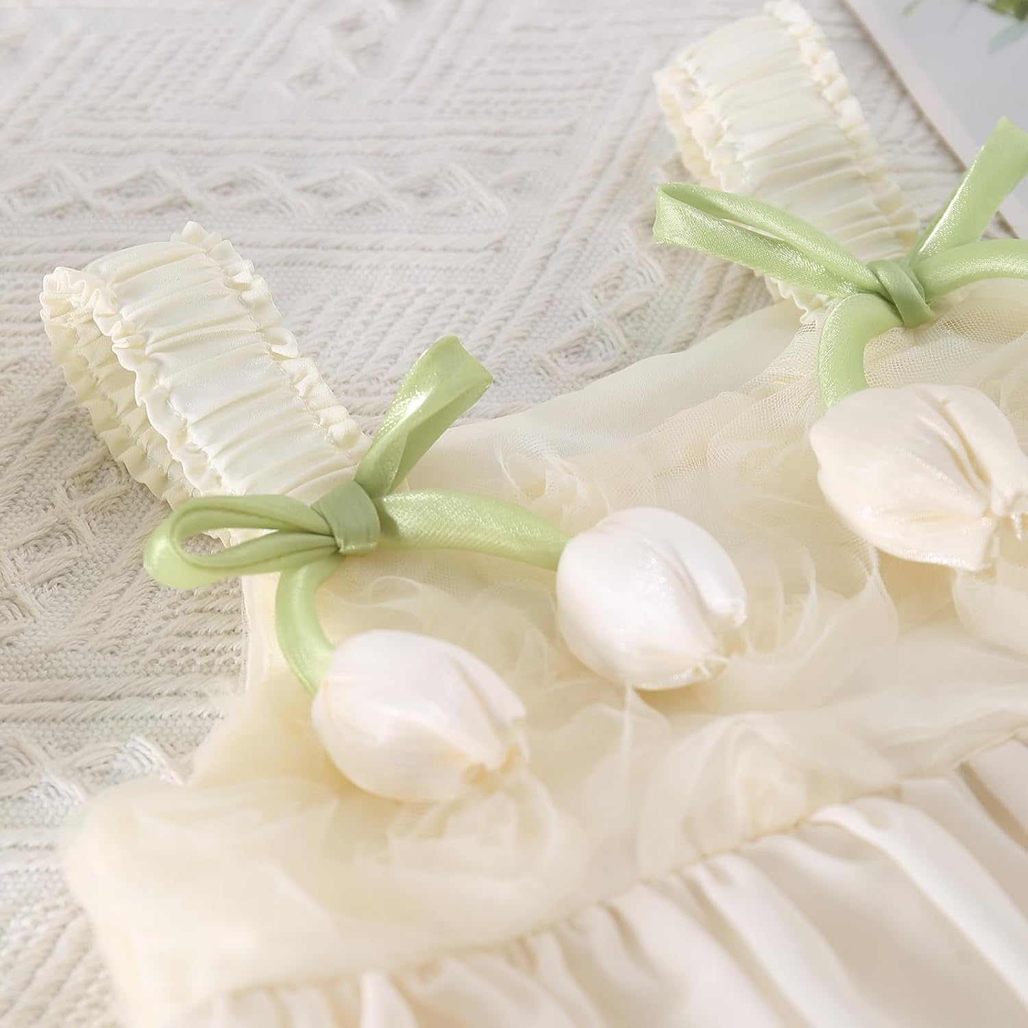 Baby princess dresses; Baby girl summer dresses with cute floral bows, layered hem, sleeveless, a-line design; Make your little girl feel like a real princess