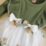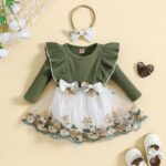 Siyova Baby Girl Romper Dress Long Sleeve Floral Embroidery Tulle Patchwork Romper with Headband Toddler Princess Dresses Autumn Winter Outfits