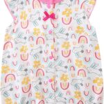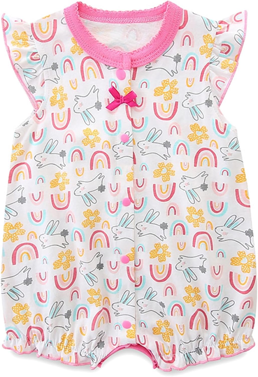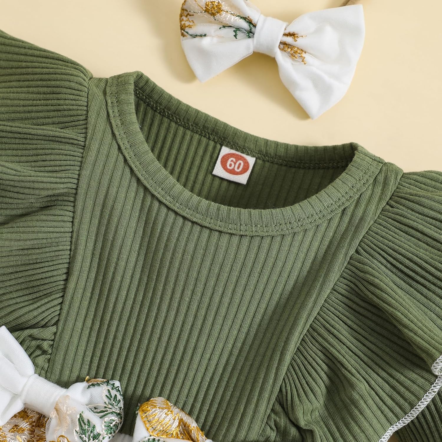 Infant Baby Girls Romper Dress Flower Embroidery Knit Rib Ruffles Crew Neck Jumpsuits Summer Bodysuits with Bow Headband