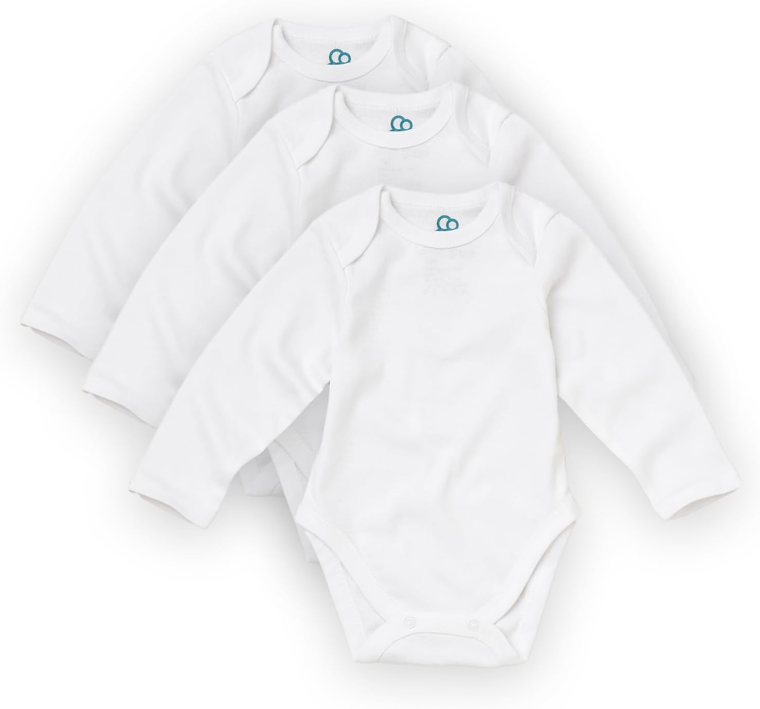 Sproot Baby | Premium Organic Cotton Bodysuits | 3-5 Pack, Newborn – 24 Months | Unisex Long Sleeve Baby Essentials with Envelope Neckline | Soft & Premium White Baby Bodysuits for Everyday Comfort