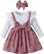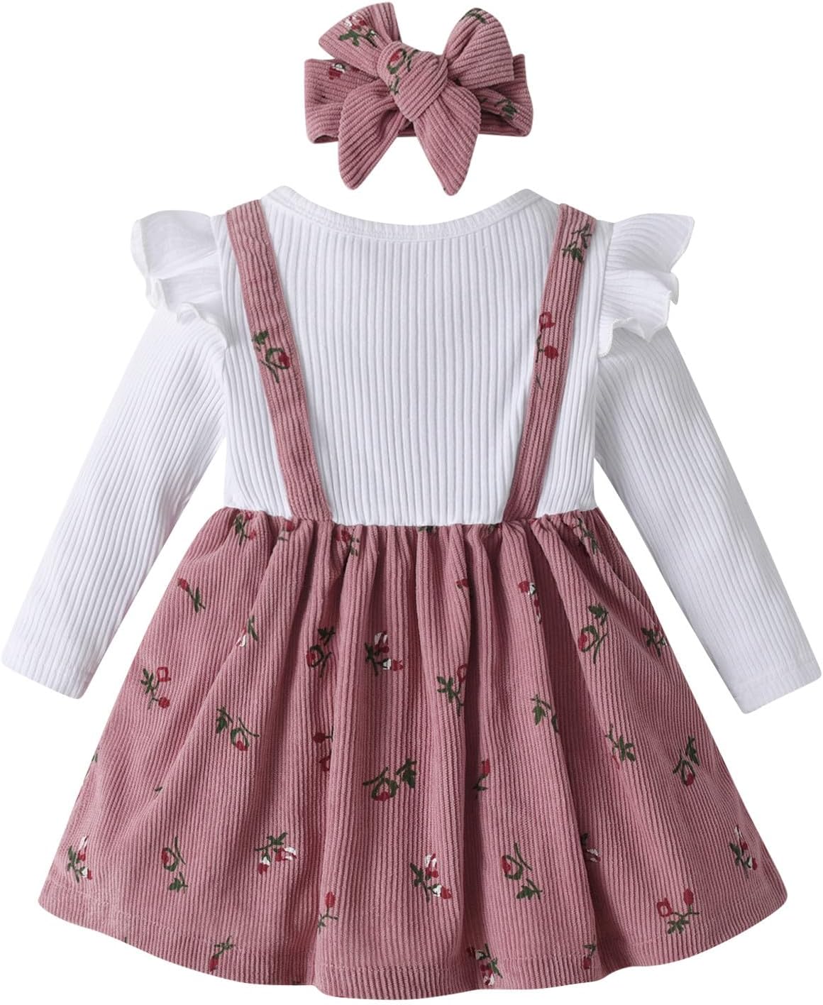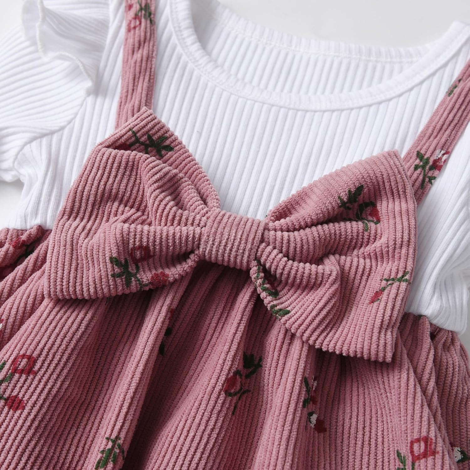 Tearfuty Baby Girl Clothes Dress Long Ruffle Sleeve Outfits Bow Tie Suspender Skirt