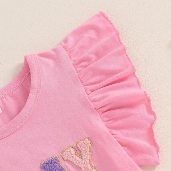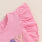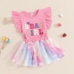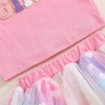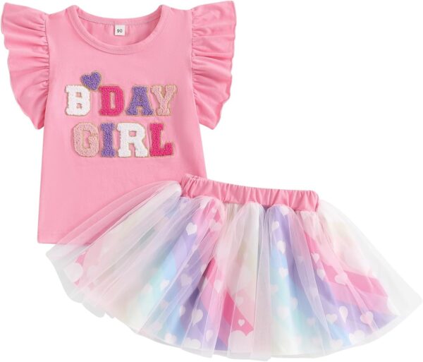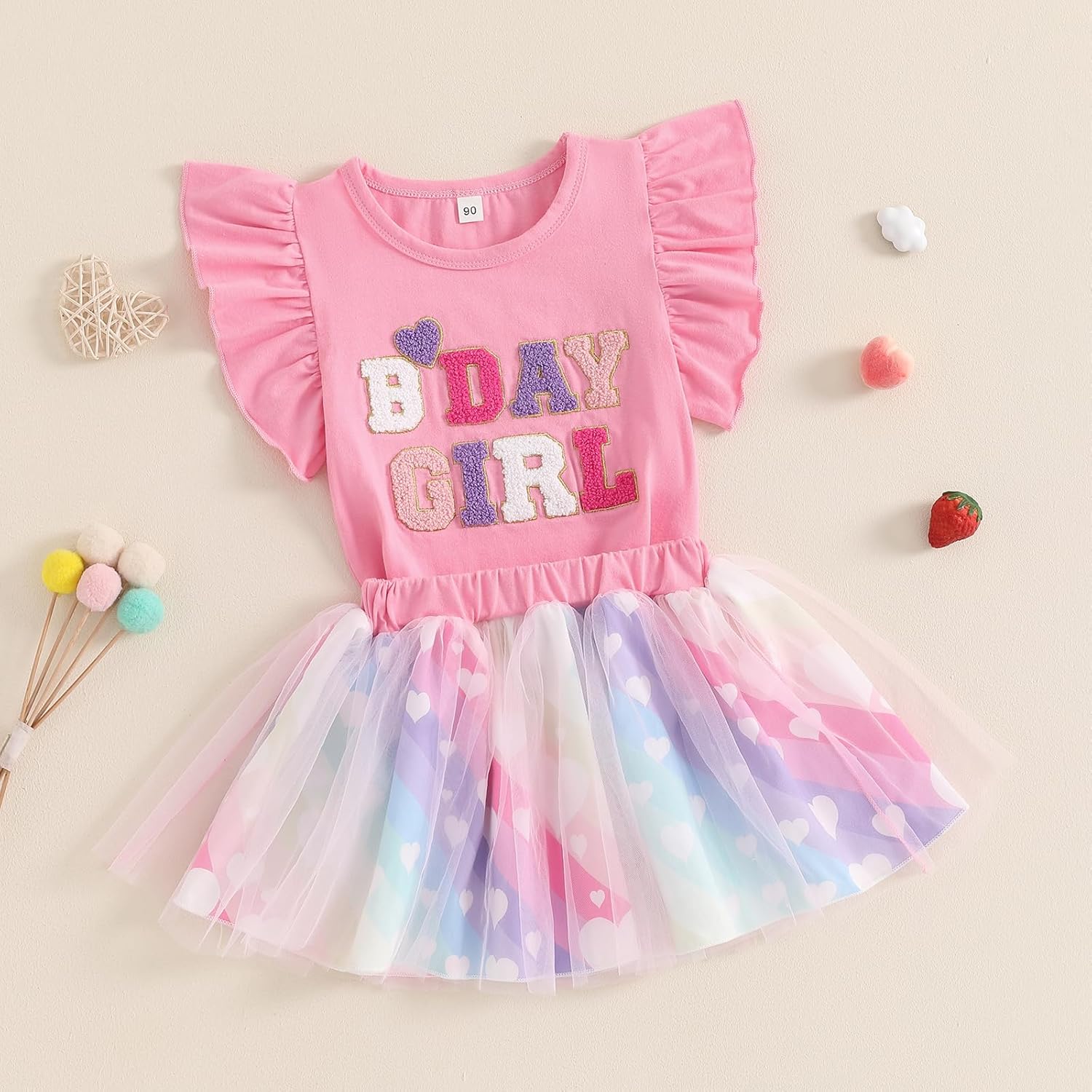 Little Girls Birthday Outfits, Letter Embroidery Short Sleeve T-Shirt Patchwork Mesh Skirt 2 Piece Set for Summer