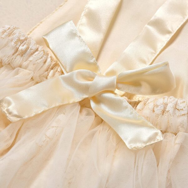 Toddler Baby Girl Lace Romper Dress Princess Fly Sleeve Backless Bodysuit Tulle Tutu Dress with Flower Crown Headband 2PCS Birthday Cake Smash Party Outfit
