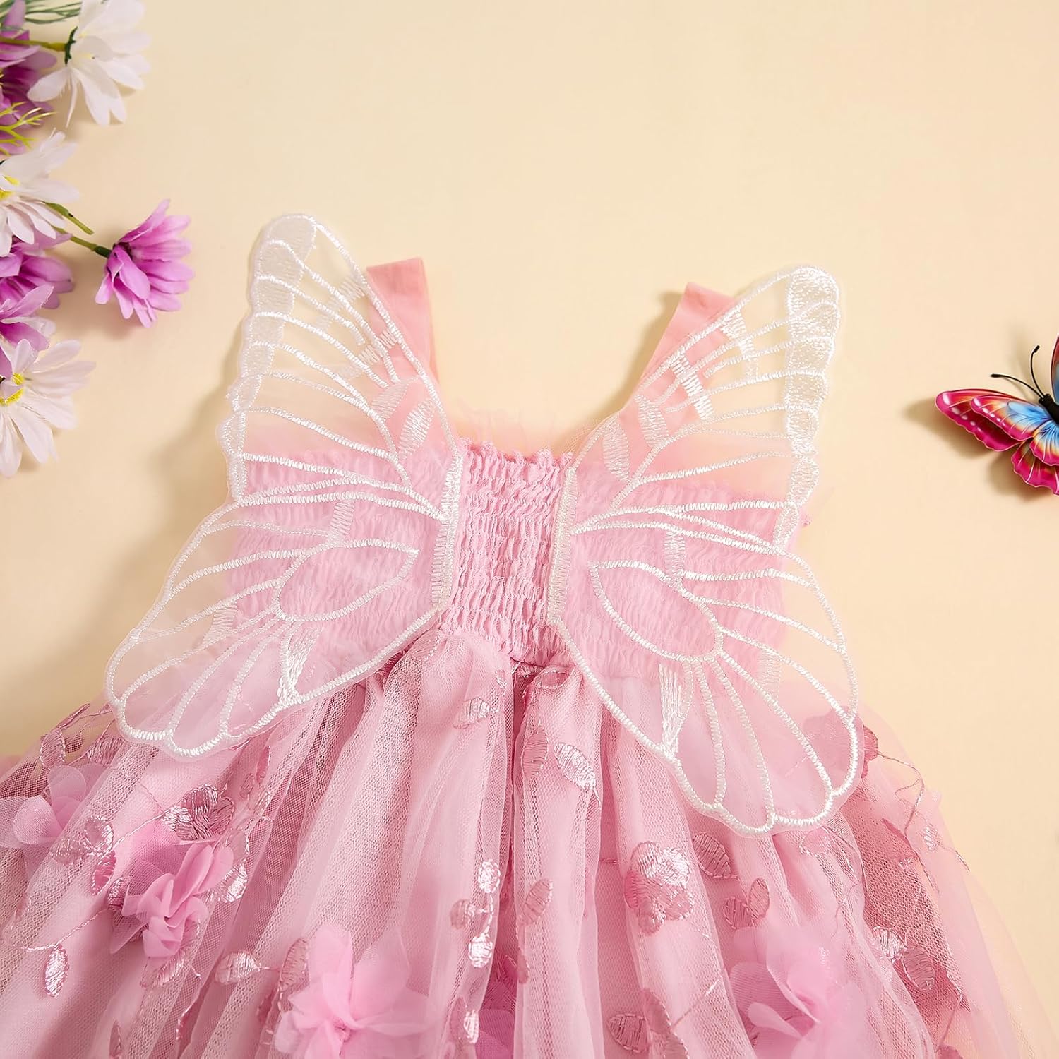 Toddler Baby Girl Summer Butterfly Wings Dress Sleeveless Princess Tutu Dress Fairy Layered Ruffle Birthday Dresses