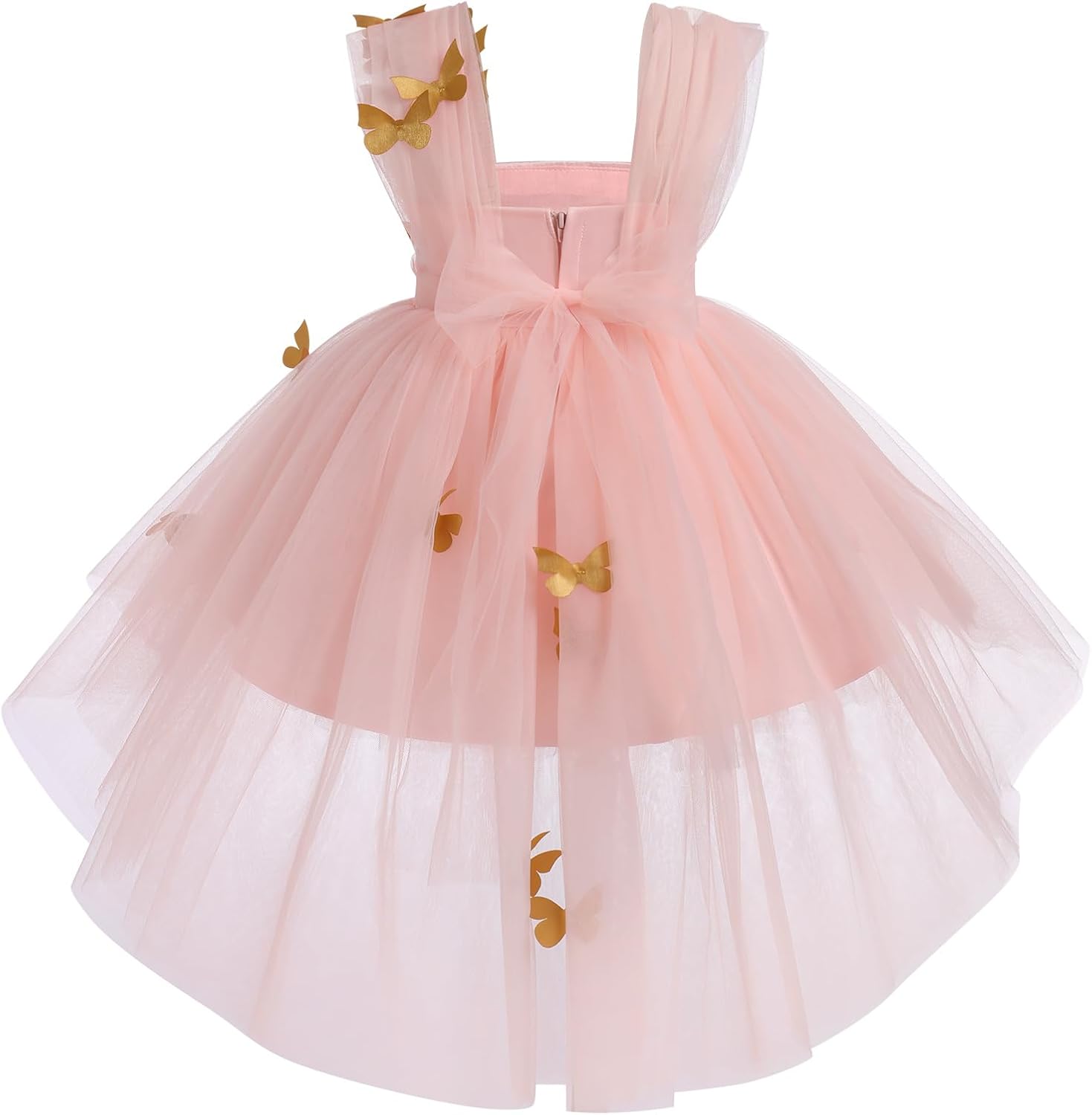 Toddlers Flower Girls Dress Kids Baby A-line Butterflies Decorate Sleeveless Tutu Dress for Princess Party Wedding Birthday Bridesmaid