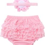 Baby Girls 1st Birthday Cake Smash Outfit Toddlers Infant Adorable Sweet Short Puff Sleeve Ruffle Tulle Romper Dress and Headband 2 Pcs Outfits Bodysuit Photo Shooting Props