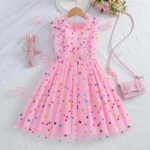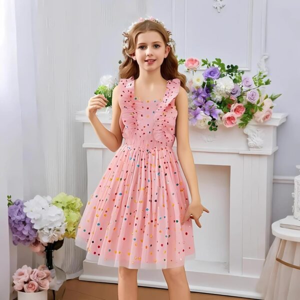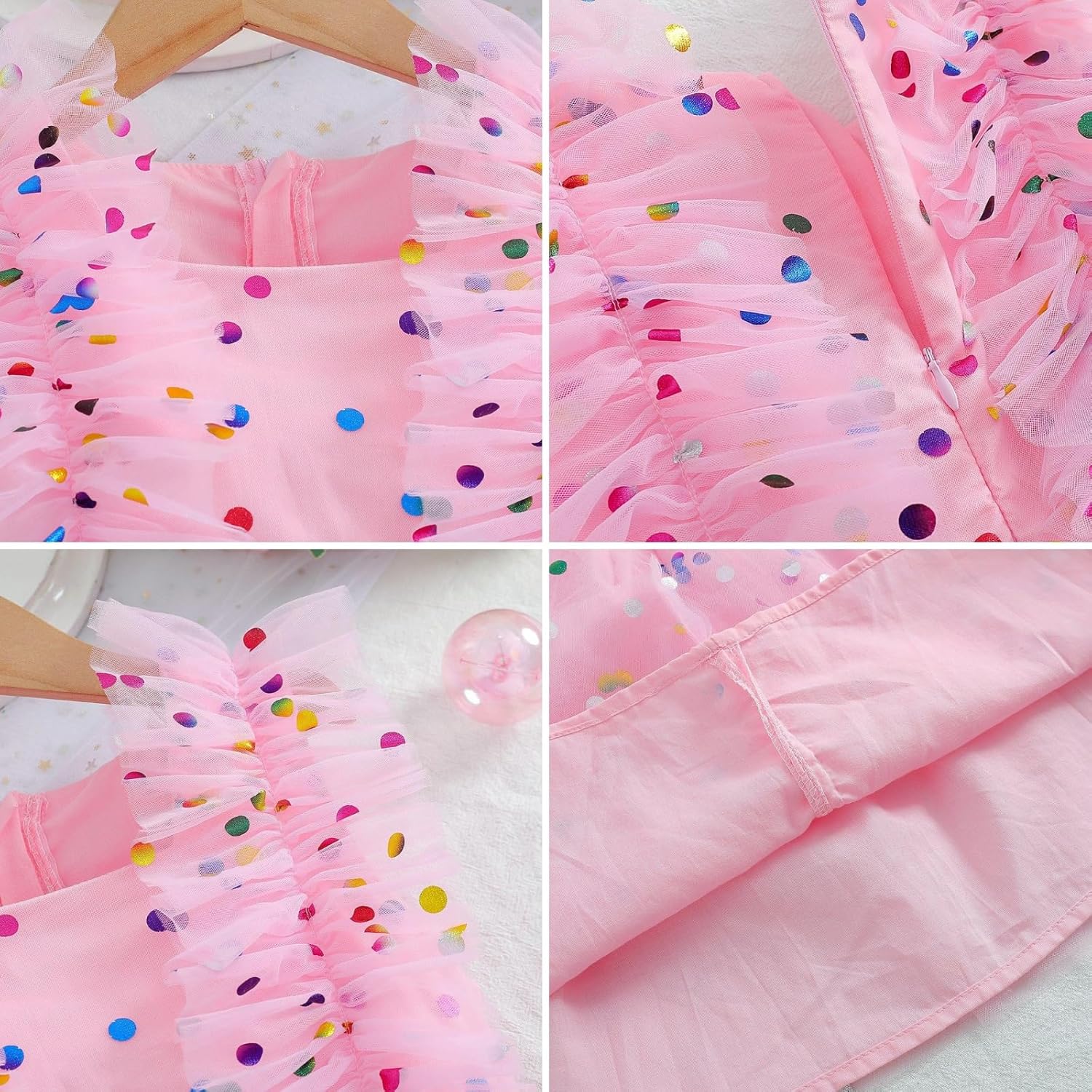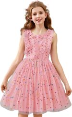 Trsenvrml Baby Girls Dresses for Kids Tutu Dress Little Girl Sequin Mesh Dress Ruffle Sleeveless Party Dress