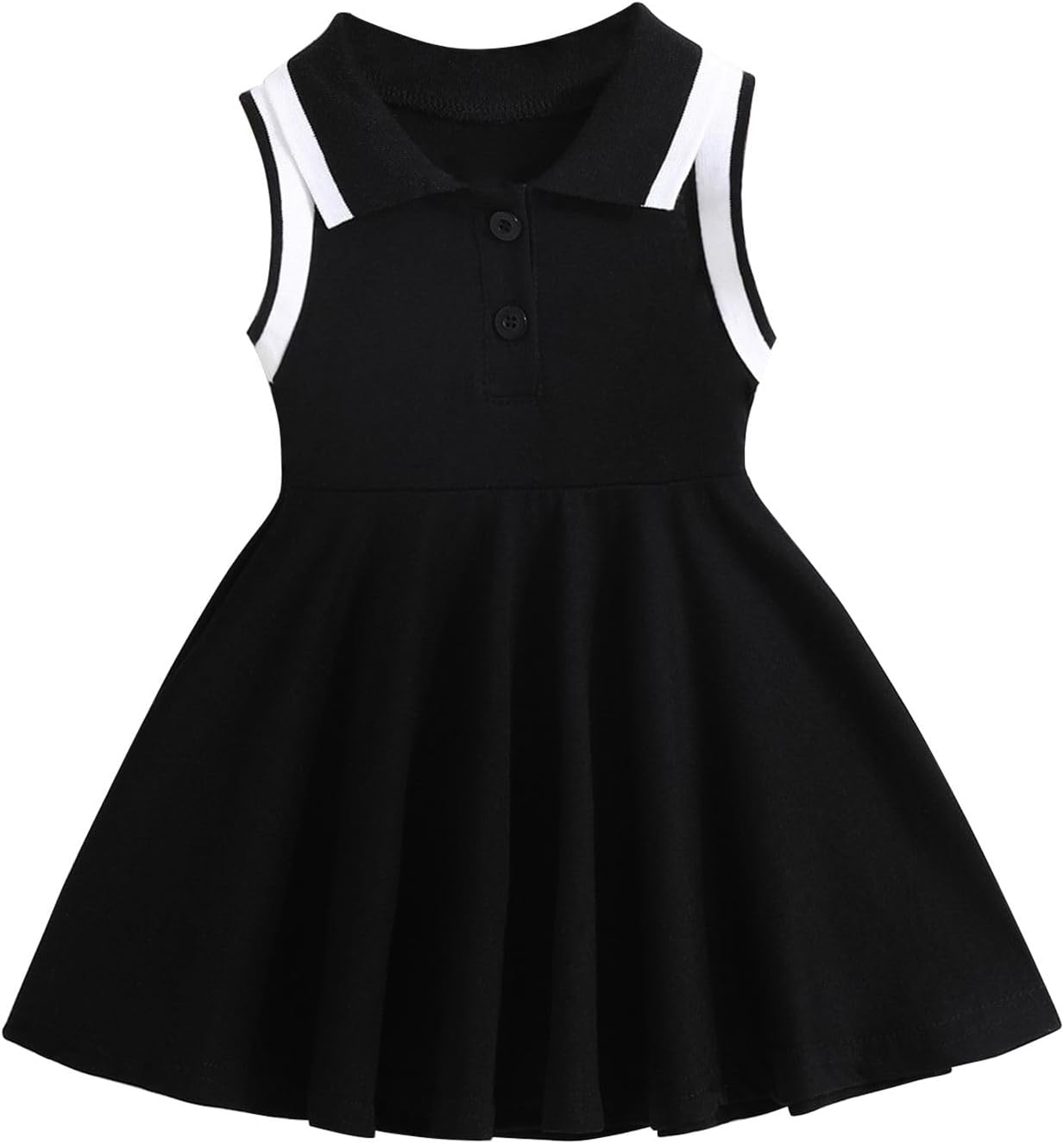WISREMT Baby Toddler Girls Tank Dress Sleeveless Athletic Dresses Tennis Golf Shirt Dress High Waist Pleated Skirt 3M-3Y