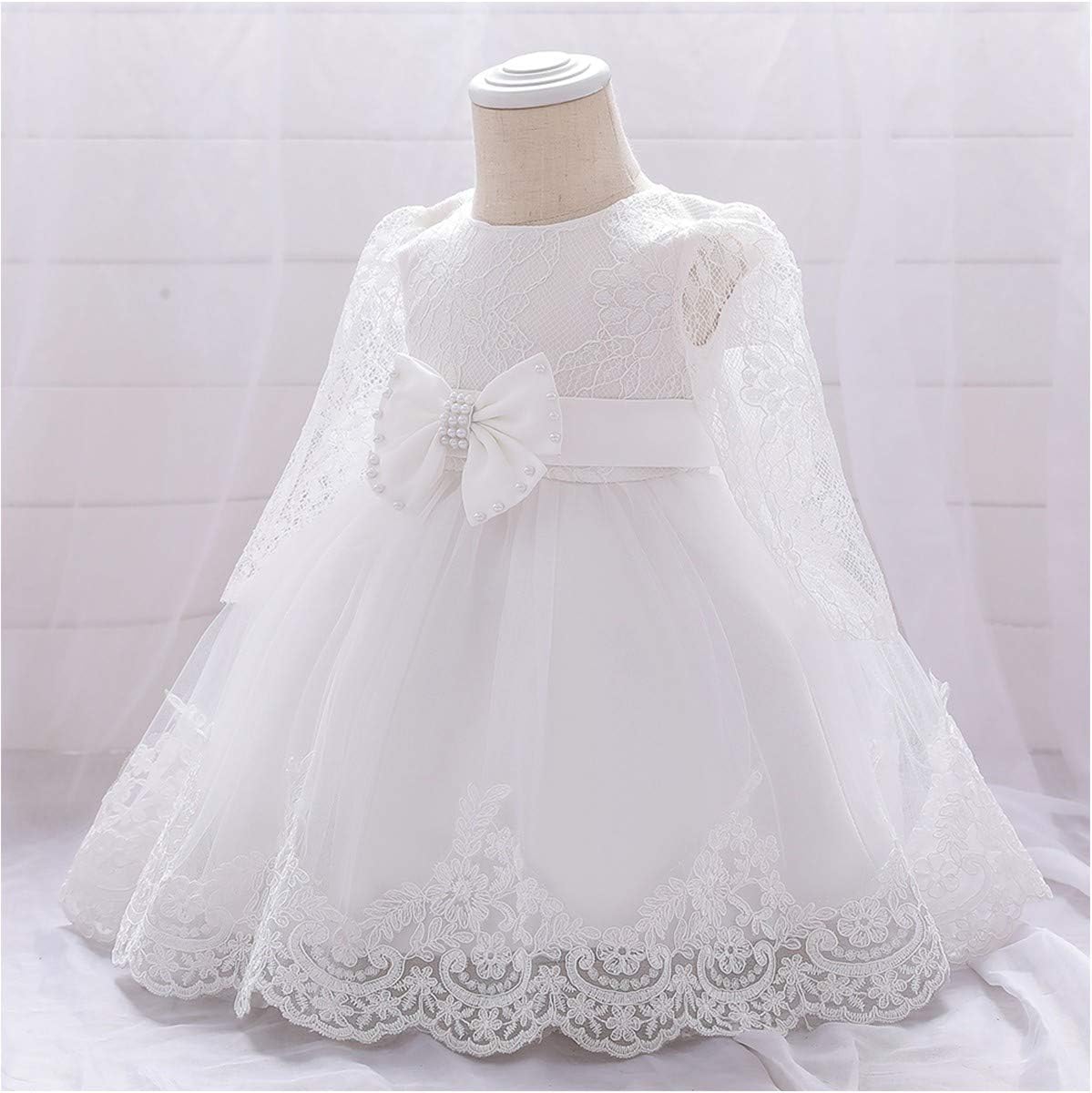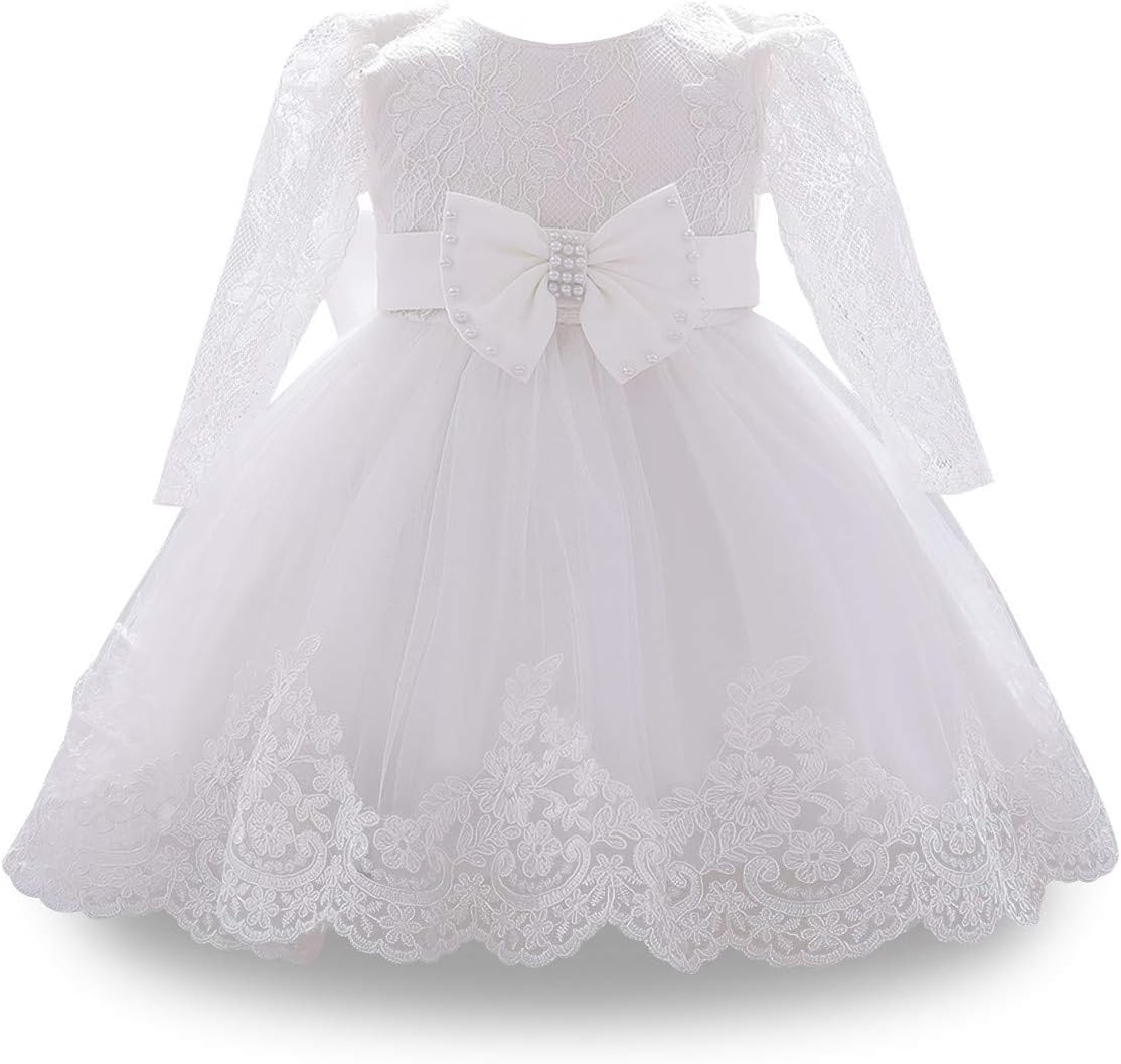 WOCINL Baby Girls Christening Long Sleeve Lace Bowknot Dresses Princess Wedding Birthday Pageant Party Baptism Tutu Gown