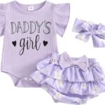 WYTbaby Baby Girl Clothes Long Sleeve Newborn Romper Flower Ruffle Knitted Baby Girl Dress Spring Fall Clothes Set for Infant Girls 0-12 Months