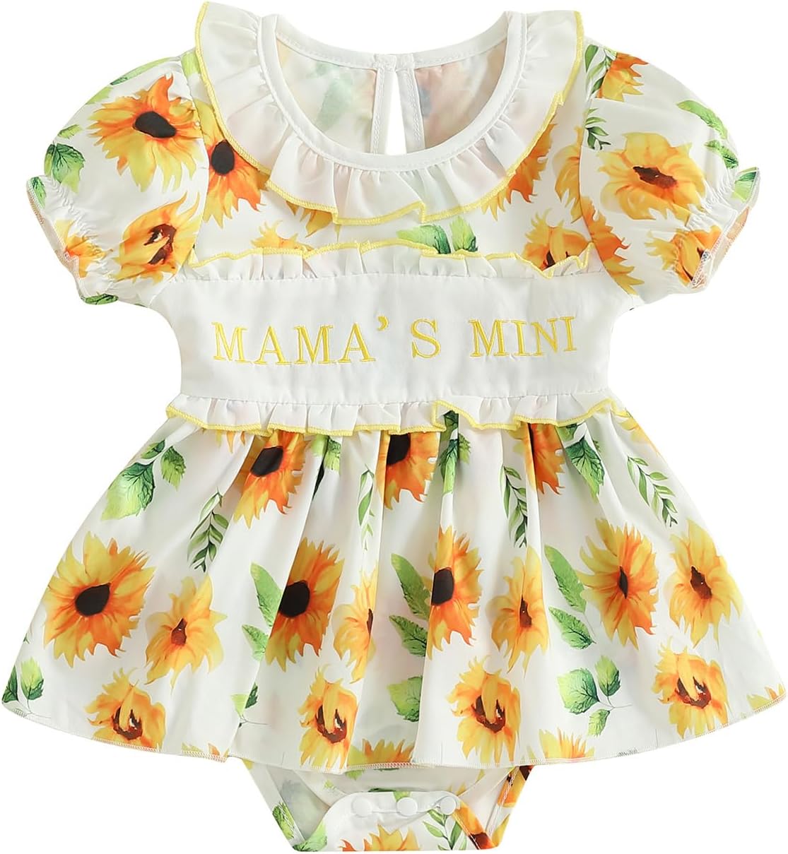XIXIMAON Cute Baby Girl Summer Clothes Babydoll Collar Short Puff Sleeve Letter Embroidery Ruffle Romper Dress Mamas Mini Floral Jumpsuit Toddler Outfits