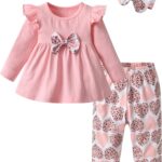 Newborn Infant Baby Girl My First Valentine’s Day Outfits Heart Ruffle Long Sleeve Romper Bodaysuit 2 Piece Outfits Fall Clothes