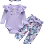 ZZLBUF Newborn Infant Baby Girl Clothes Set Flower Lace Ruffle Long Sleeve Tutu Romper Dress Headband 2Pcs Outfits