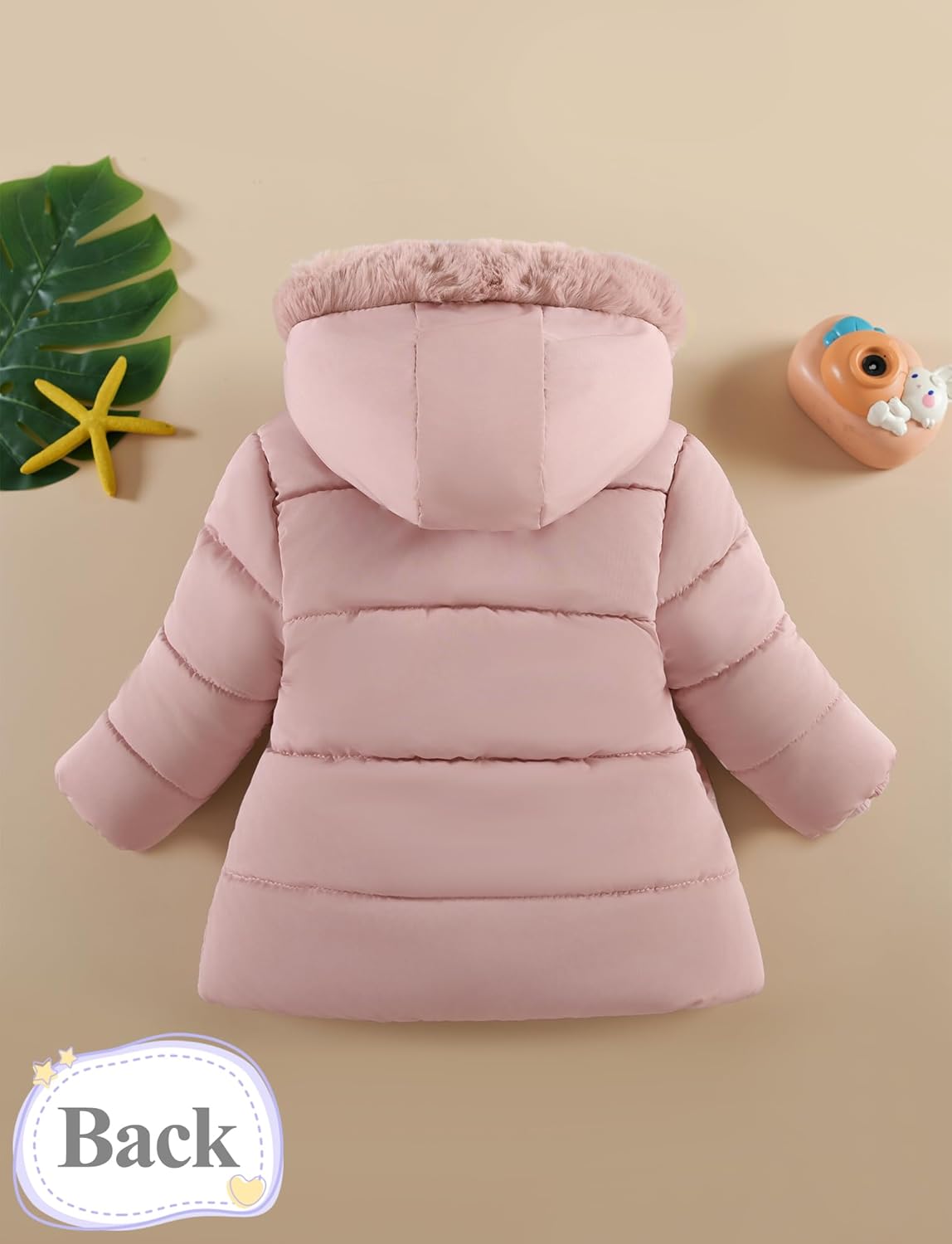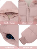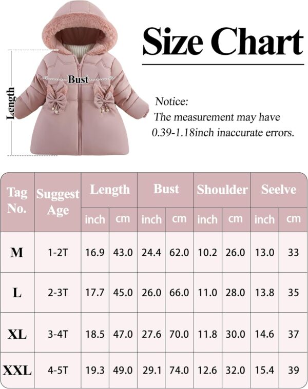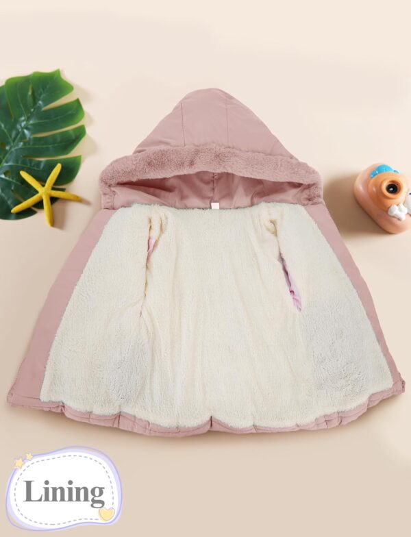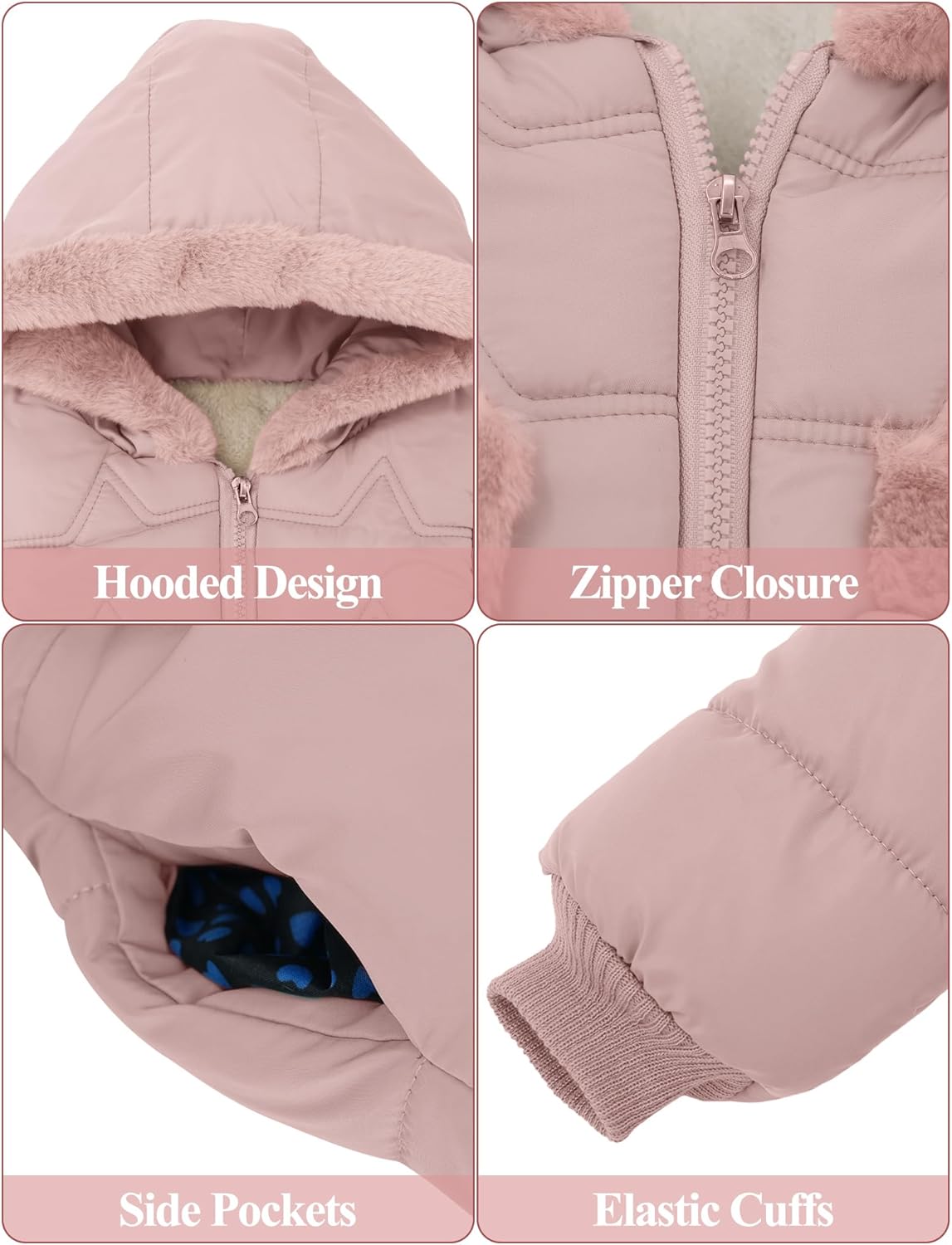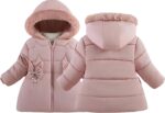 Adigau Kids Toddler Girl Snow Hooded Jackets Children’s Coat Double Bow Tie with Cap Solid Zip Round Collar Woolen Lining Winter Snow for Girls