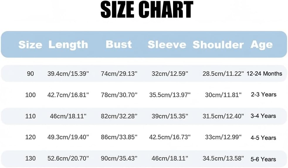 Size – Length – Bust – Sleeve – Shoulder – Age