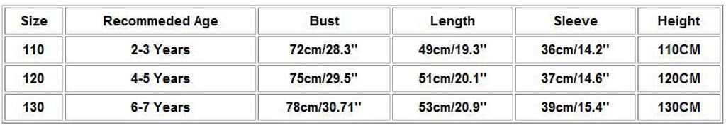 🍒Size:110 Recommeded Age:2-3 Years Bust:72cm/28.3” Length:49cm/19.3” Sleeve:36cm/14.2” Height:110CM