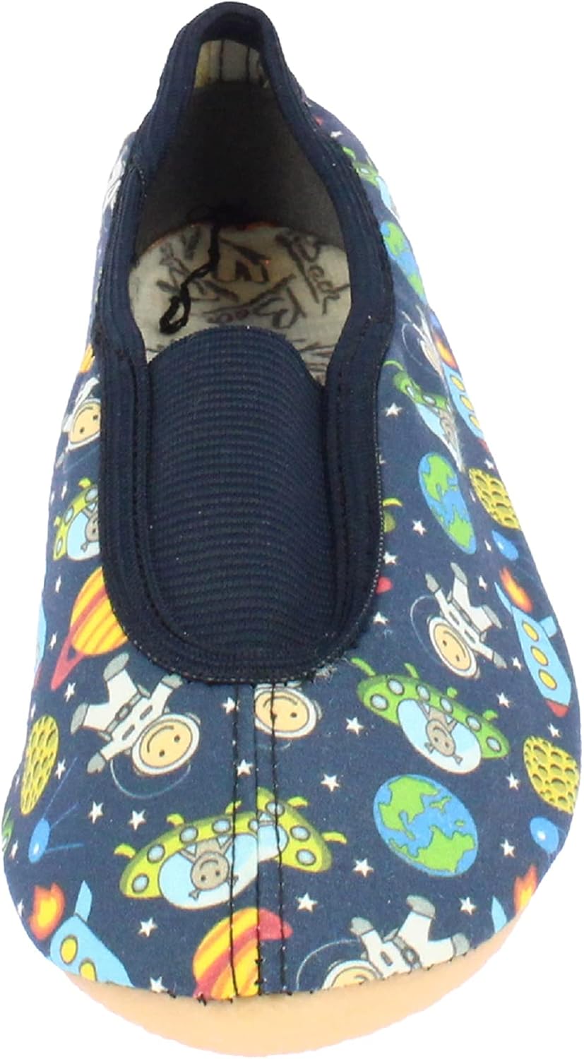 Slippers for boys — on beck.shoes. Galactic boys’ slippers with a child-friendly space motif. The elastic instep ensures a comfortable fit and optimal comfort. The all-rounder for sport, dance, play and leisure. Foot-friendly and high-quality craftsmanship. Proven quality by Beck! Ideal for gymnastics and floor exercises, but also as slippers for at home or at the kindergarten.