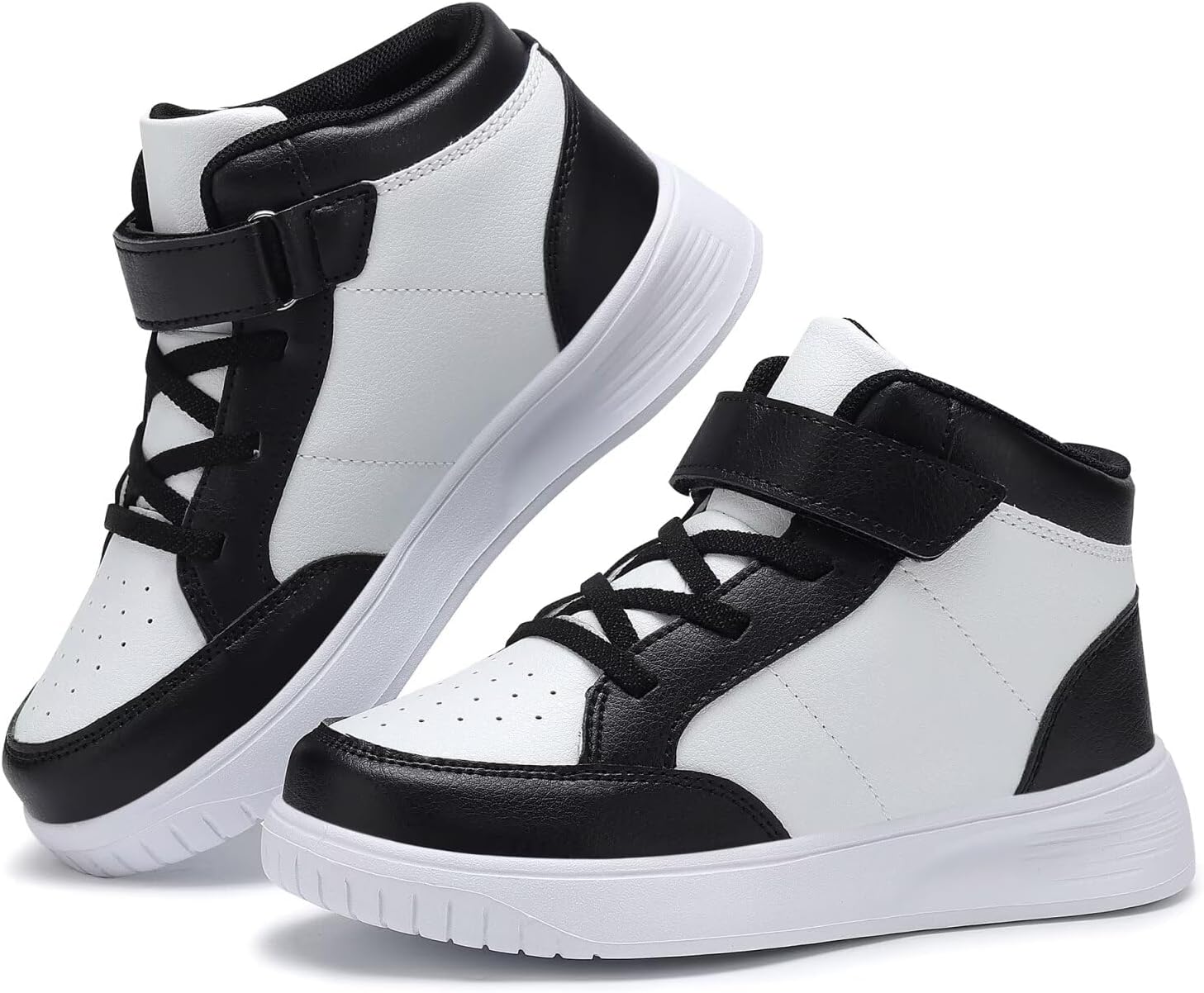 RTOUNT Kids Trainers Boys High Top School Tennis Sneakers for Girls Running Adjustable Strap Shoes