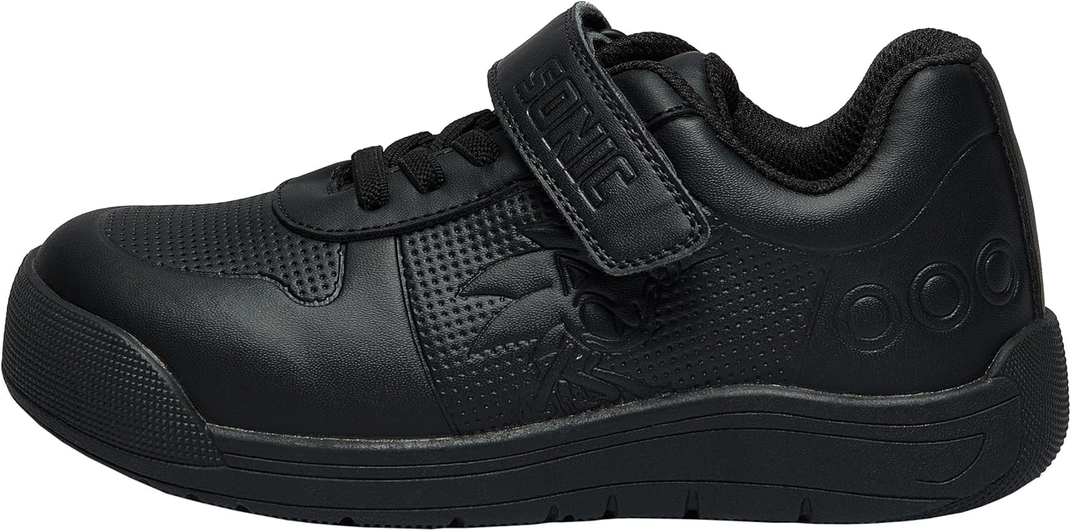 Step into the high-speed world of Sonic The Hedgehog in these stylish boys black school shoes. These boys sneakers are a statement piece for young gamers and Sonic fans alike. Sonic is pictured in a dynamic stance embossed on the sides of the boys shoes, while Sonic rings detailed on the heel add a playful touch of nostalgia. Crafted with attention to detail, these sonic trainers also feature his unmistakable self on the inside soles. As officially licensed Sonic the Hedgehog merchandise these Sonic shoes for boys are a perfect way to show off your speed on school days or playground adventures. These boys black trainers are sure to be a hit among fans of the Sonic games. These kids black trainers are versatile enough to pair with any outfit, adding a dash of Sonic’s charm to your child’s everyday look. Whether you’re looking for the ideal boys gifts for a birthday, holiday or special occasion, these Sonic boys black school shoes will surely to put a smile on any young gamer’s face. With Sonic The Hedgehog gifts in mind, these boys school trainers are the best Sonic gift of adventure, speed, and endless fun. So level up your little gamers boys footwear with these Sonic school shoes for boys. It’s time to race into excitement and style with these Sonic The Hedgehog shoes.